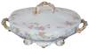 Vintage French Limoges floral porcelain oval lidded vegetable dish with gilded feet and handles, sold by Marshall Field & Co.