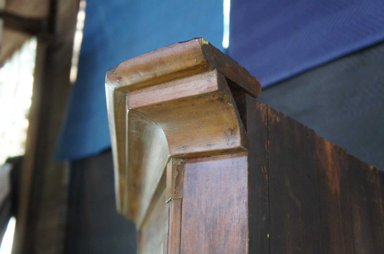 Good antique condition, wear and distressing commensurate with age and use, edge / finish wear, paint loss, one small old crack in corner of panel.