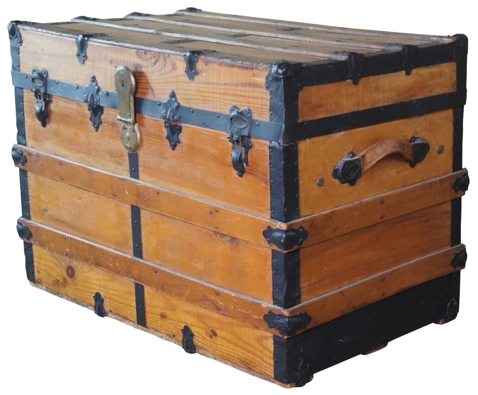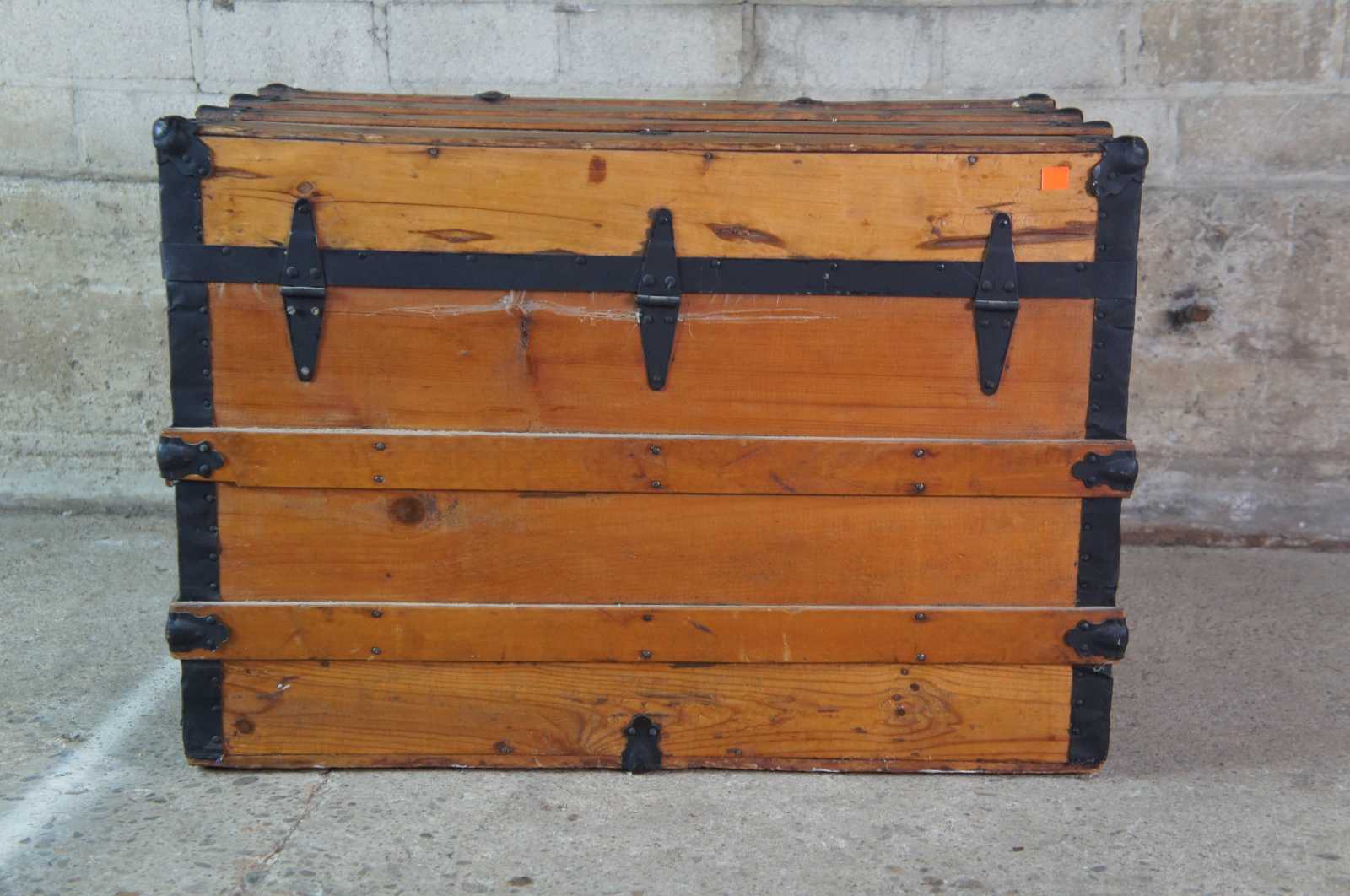 Antique 19th Century Victorian Pine & Metal Banded Steamer Trunk Chest 31"