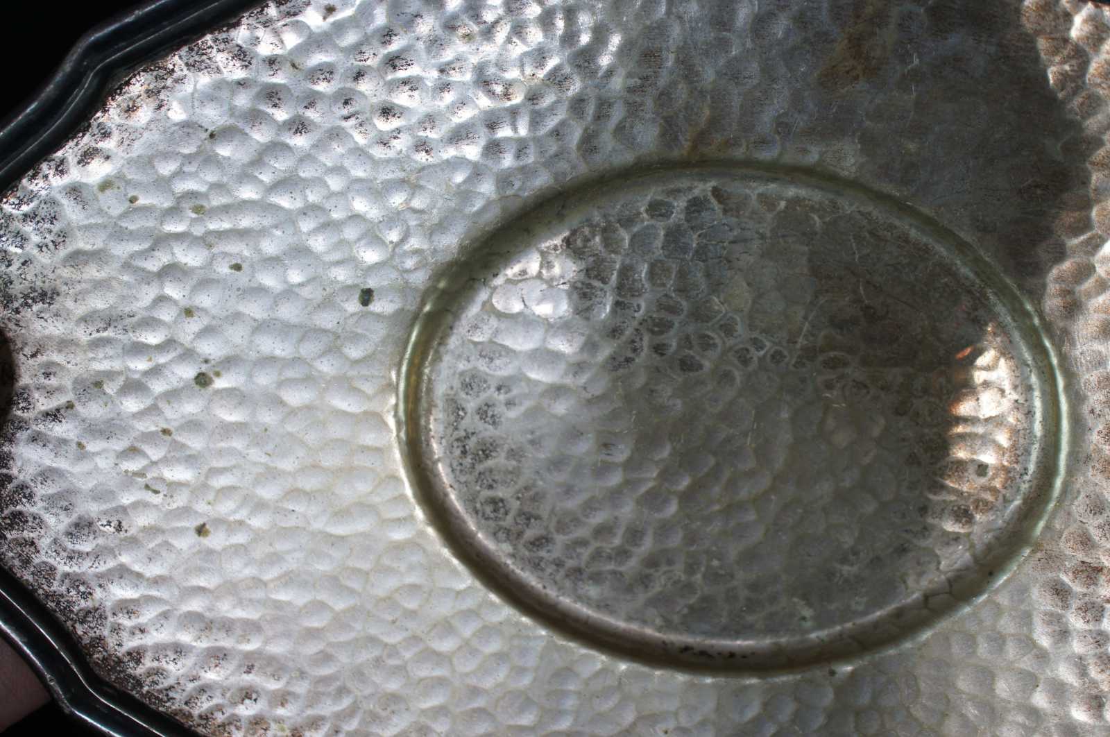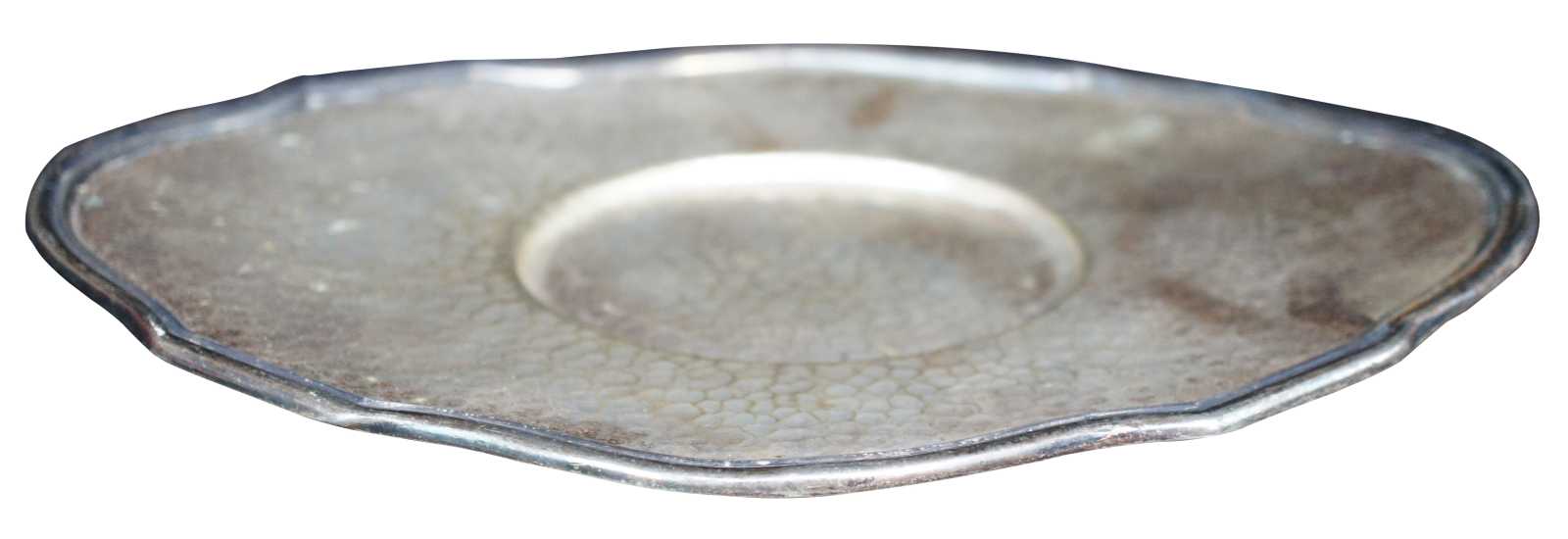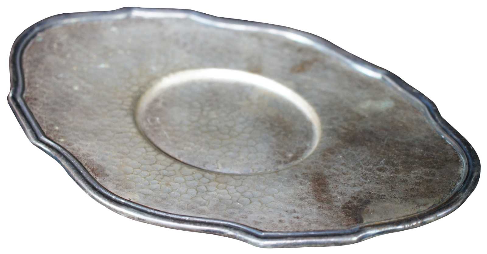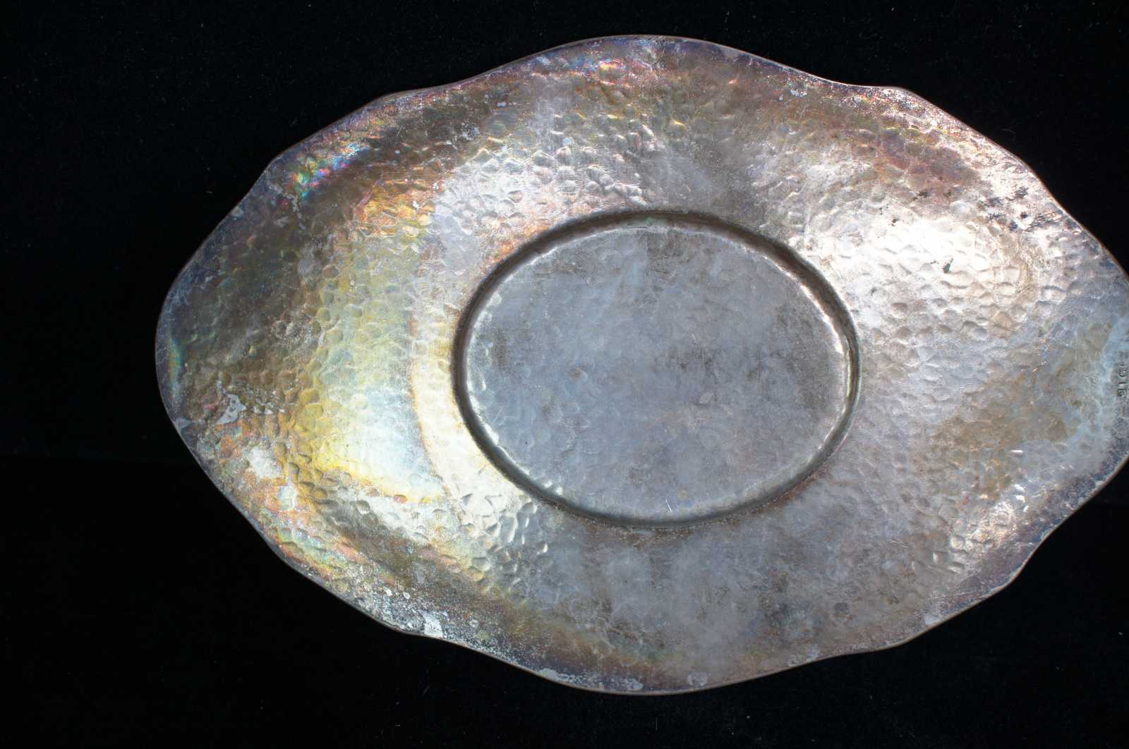 Antique hammered silver plate dish or tray featuring serpentine oval form. Marked EPNS (IS.W) 1916 on bottom.