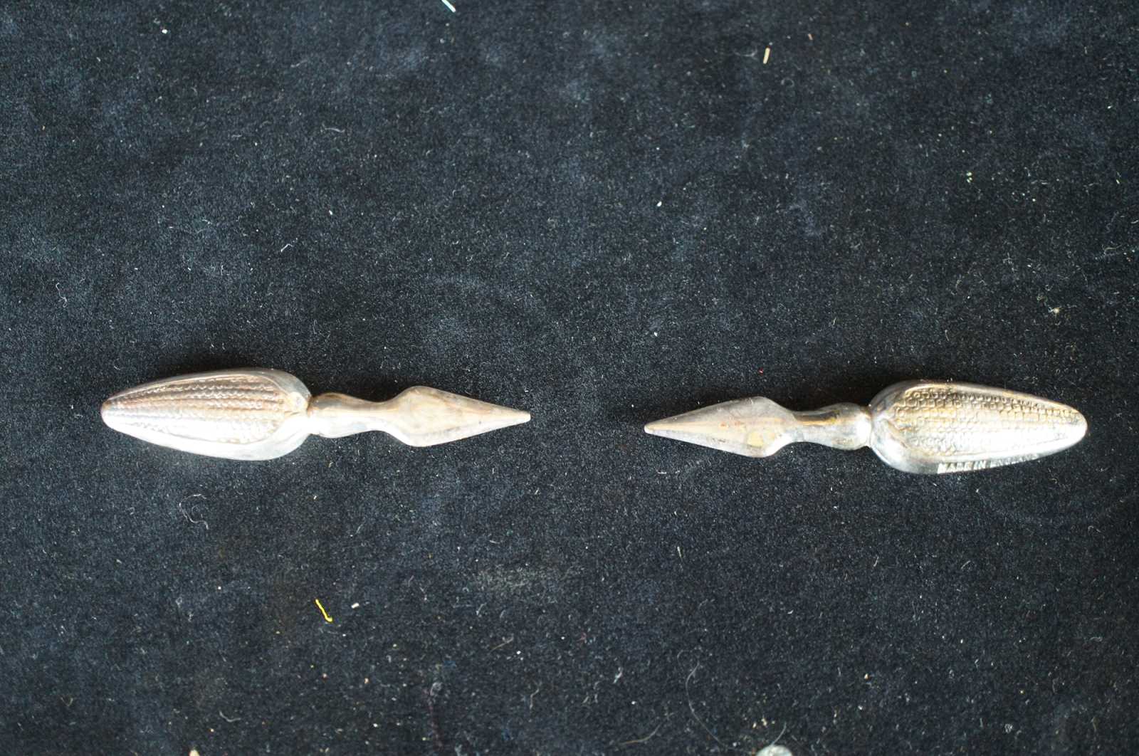 Lot of 13 vintage corn on the cob handles or holders, marked England.