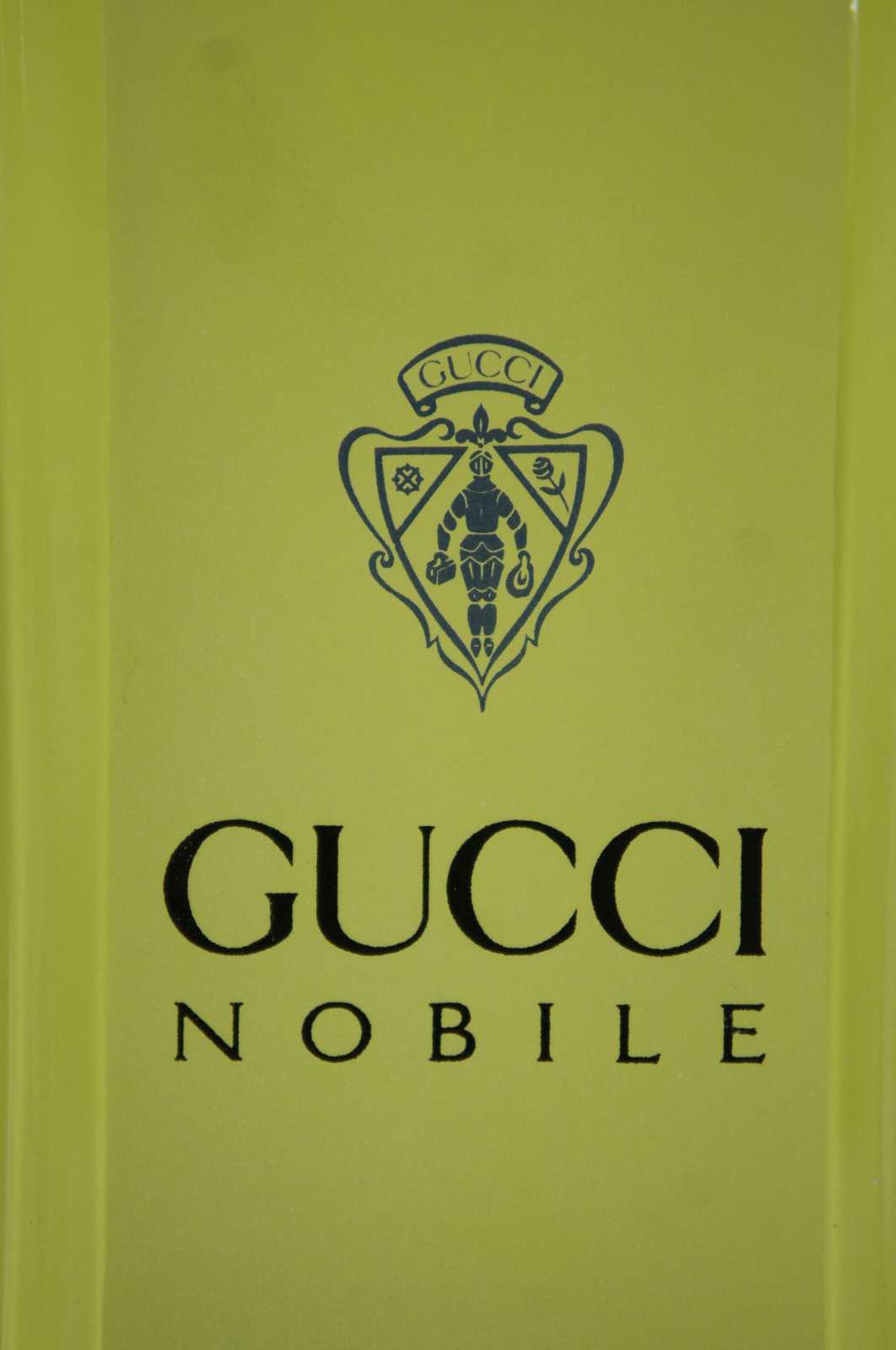 Vintage Gucci Nobile eu de toilette designer fragrance factice or dummy bottle with elegant art deco styling, originally part of a department store display.