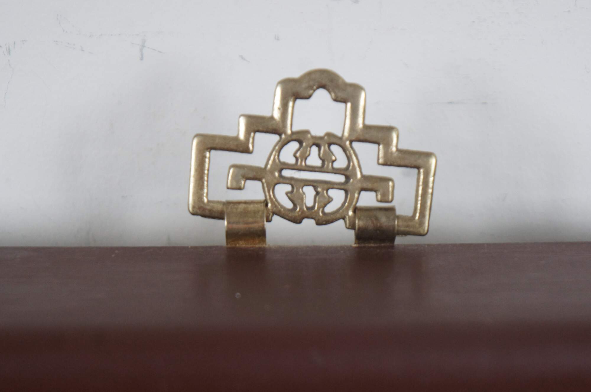 1985 Chinese Yu Tang watercolor painted hand fan featuring a design of sparrows on branches of cherry or plum blossoms, framed in a shadowbox lined with silk.