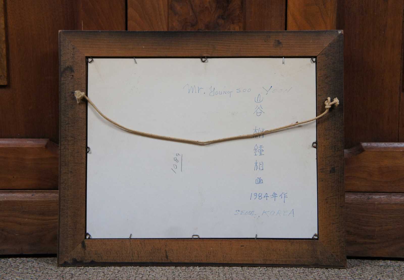 Vintage watercolor landscape painting with calligraphy by Mr. Young Soo Yoon, made in Seoul, Korea 1984. Trans.ation; In the middle of the Orchid mountain, the mountains are turning back to the grass, the earth is so beautiful