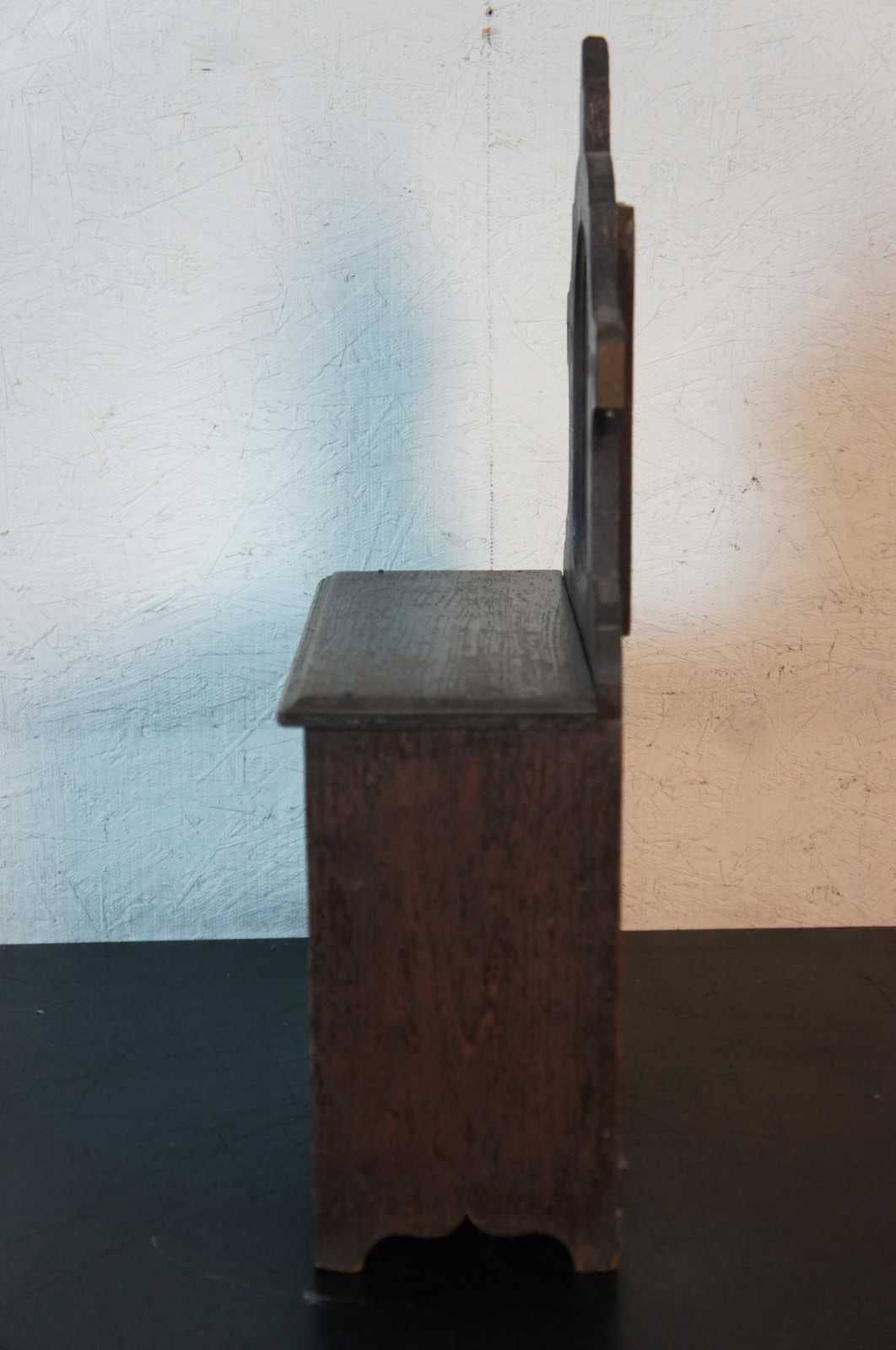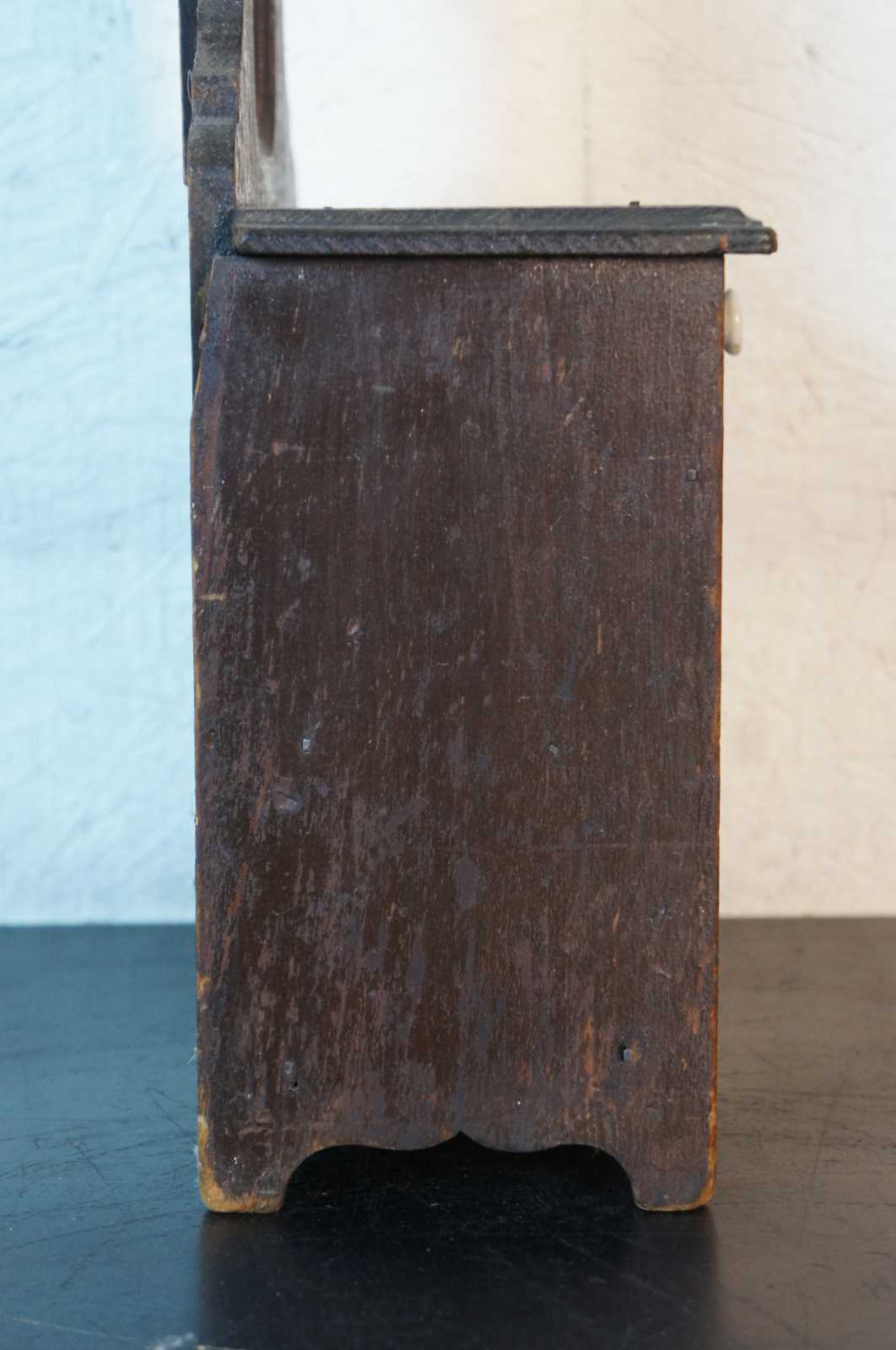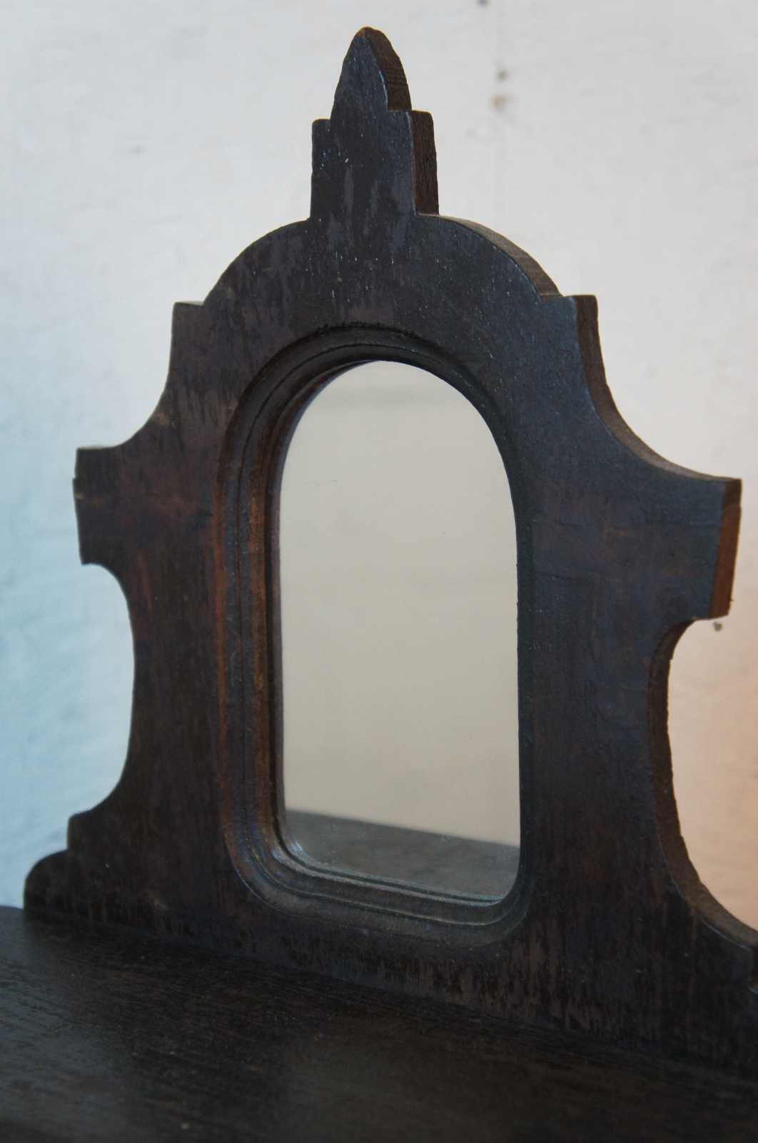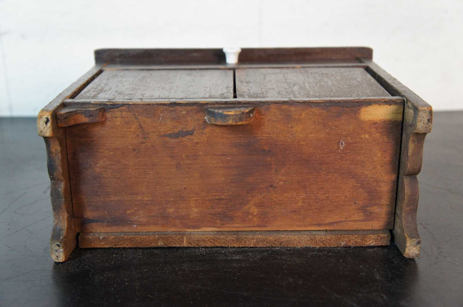 Antique 19th century Victorian salesman sample miniature pine mirrored dresser with one drawer over a two shelf cabinet.