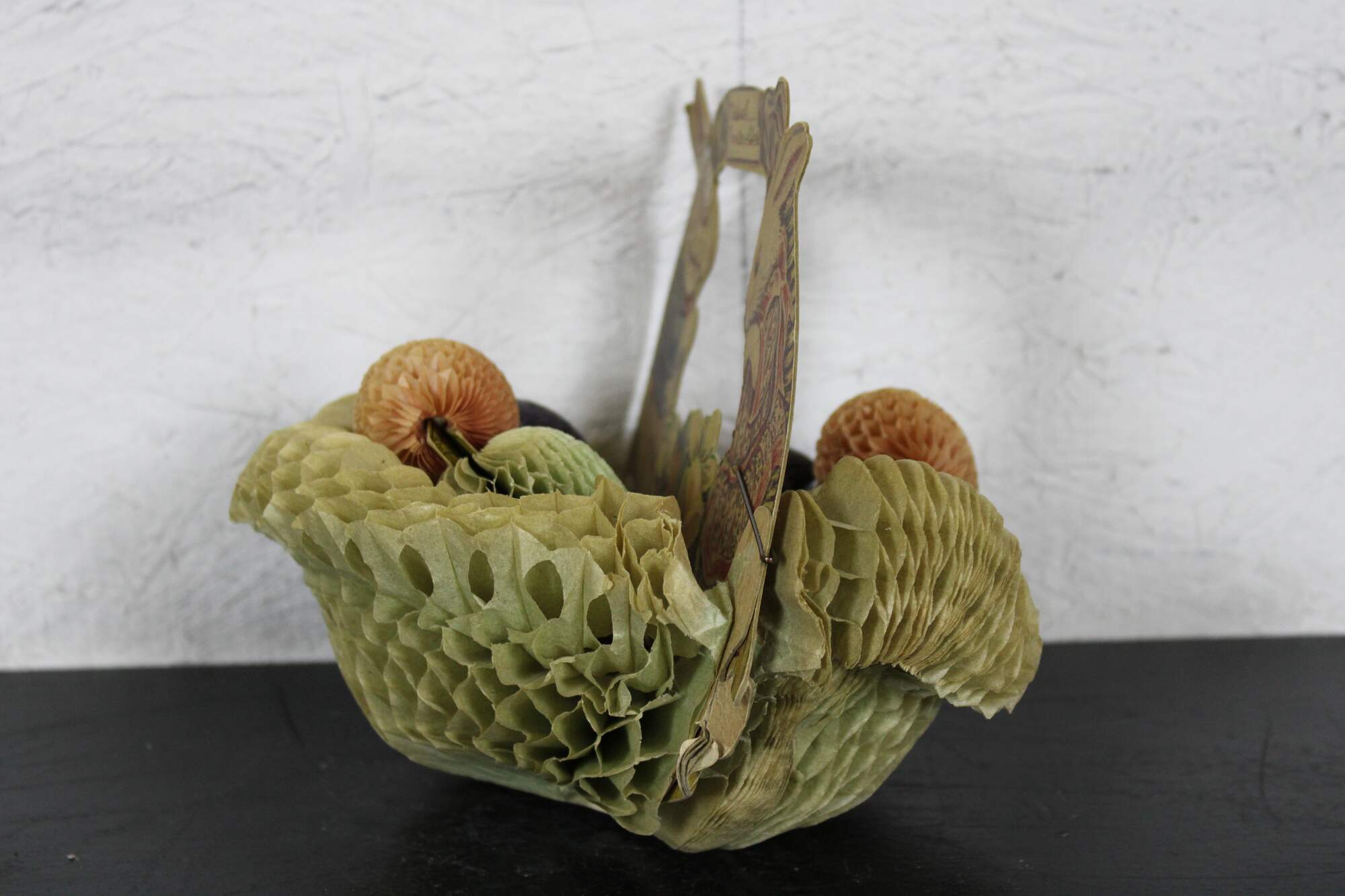 1925 Antique Beistle Diecut Honeycomb Easter Greetings Basket Eggs Bunny 8.5"