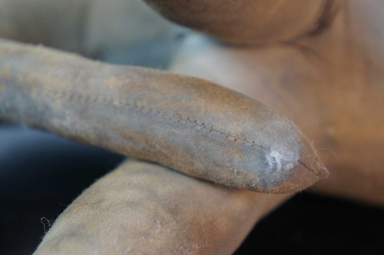Antique primitive folk art hand made stuffed elephant toy with jute tail.