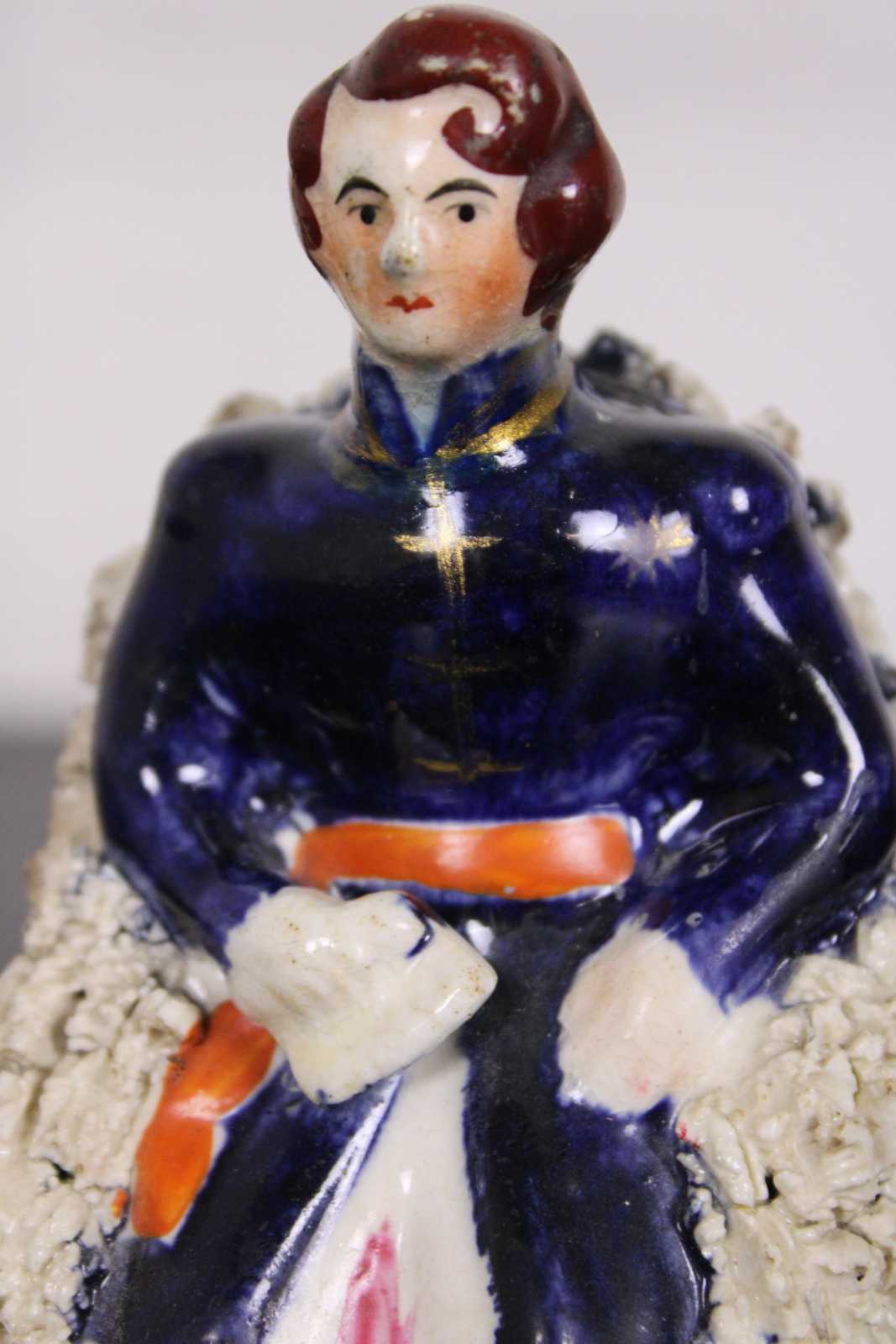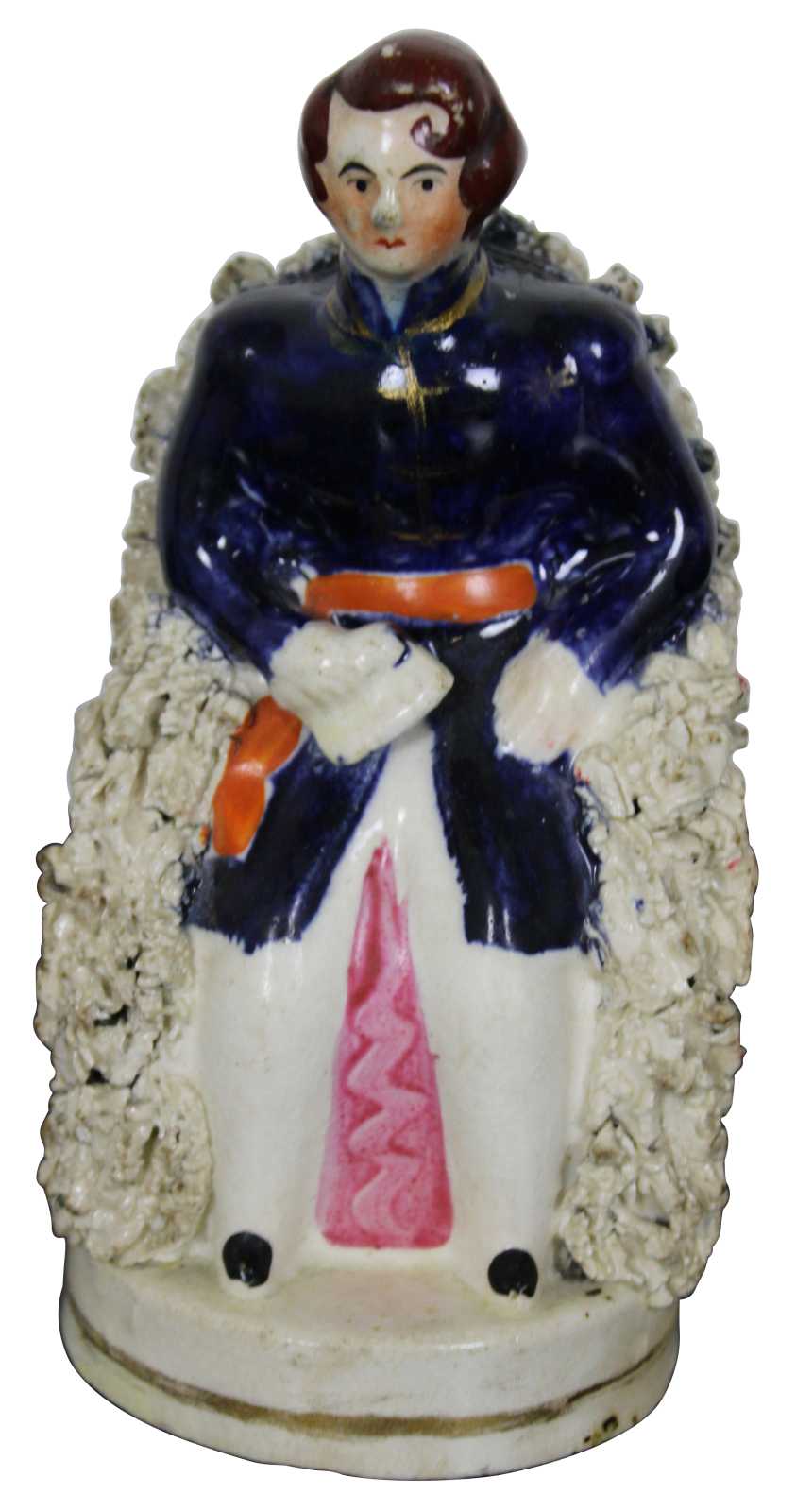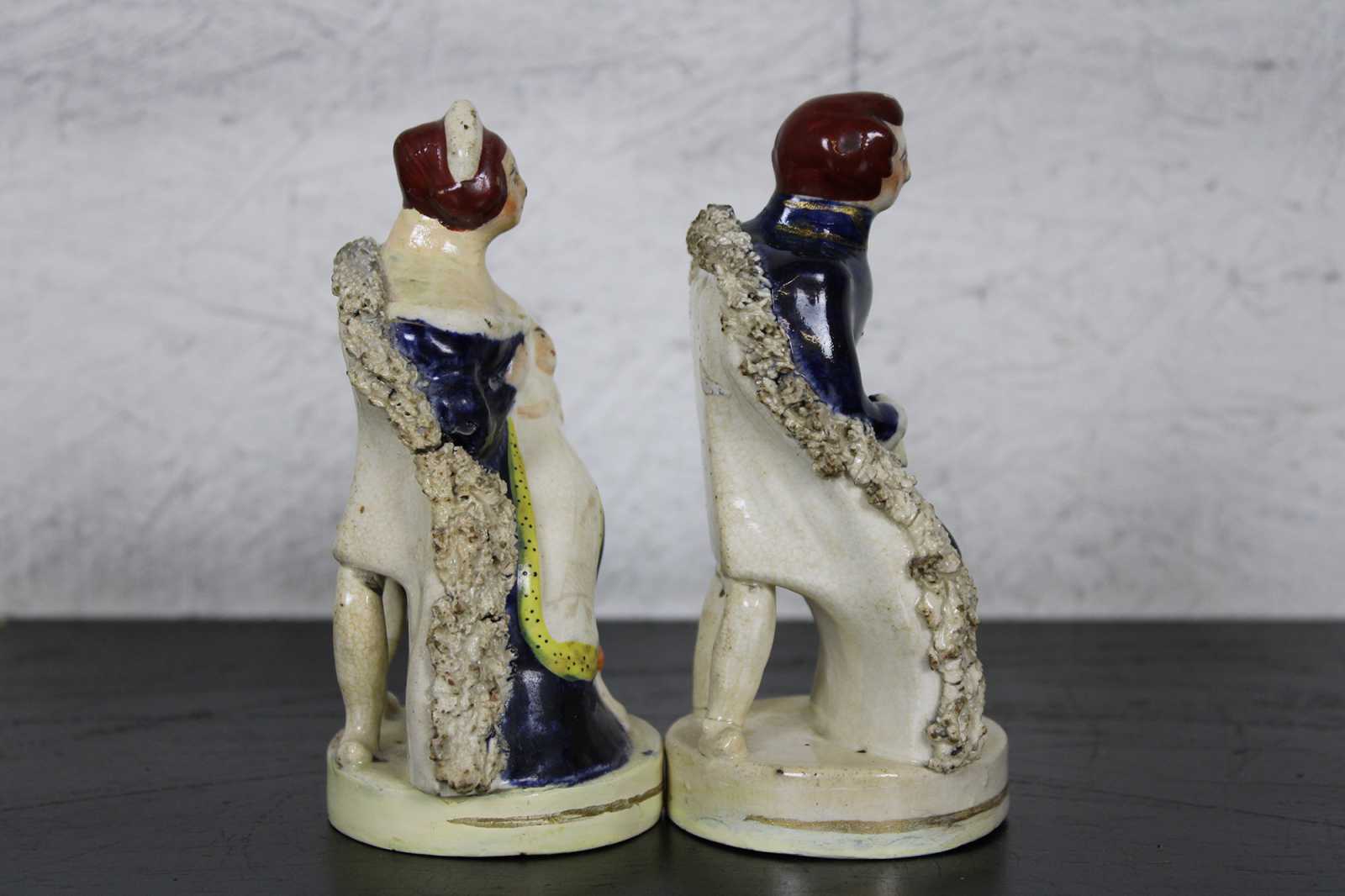 Antique Staffordshire porcelain figurine pair circa 1840 portraying Queen Victoria holding her first child, Victoria the Princess Royal, and her husband Prince Albert. The girl was always Alberts favorite and by the age of three spoke English French and German.
