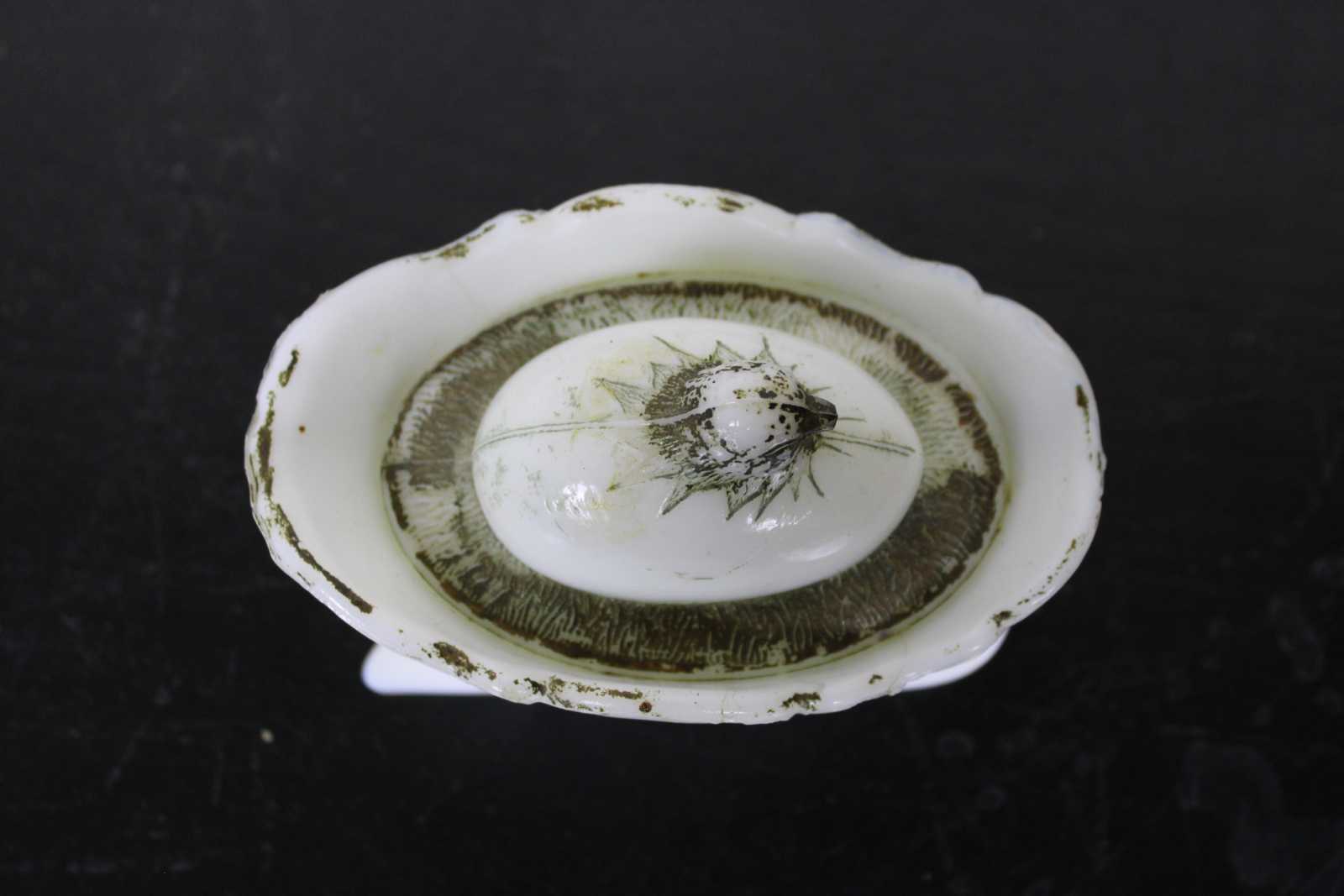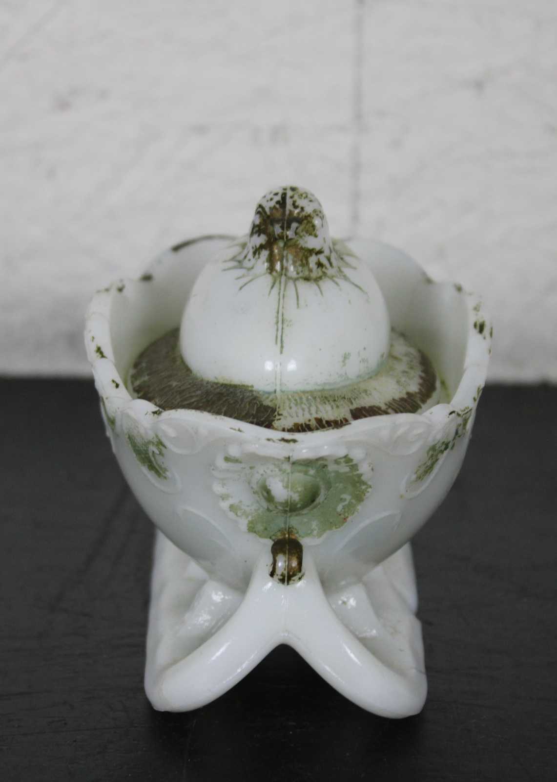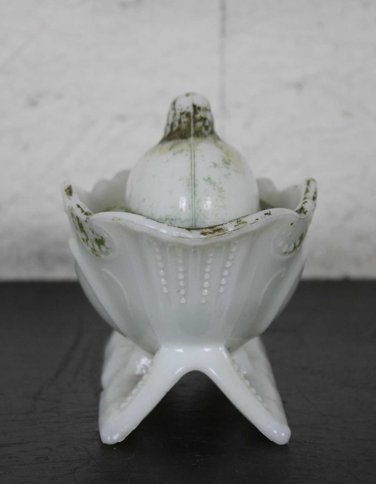 Circa 1905 antique Westmoreland Specialty Company milk glass sleigh shaped candy dish with egg and chick lid.