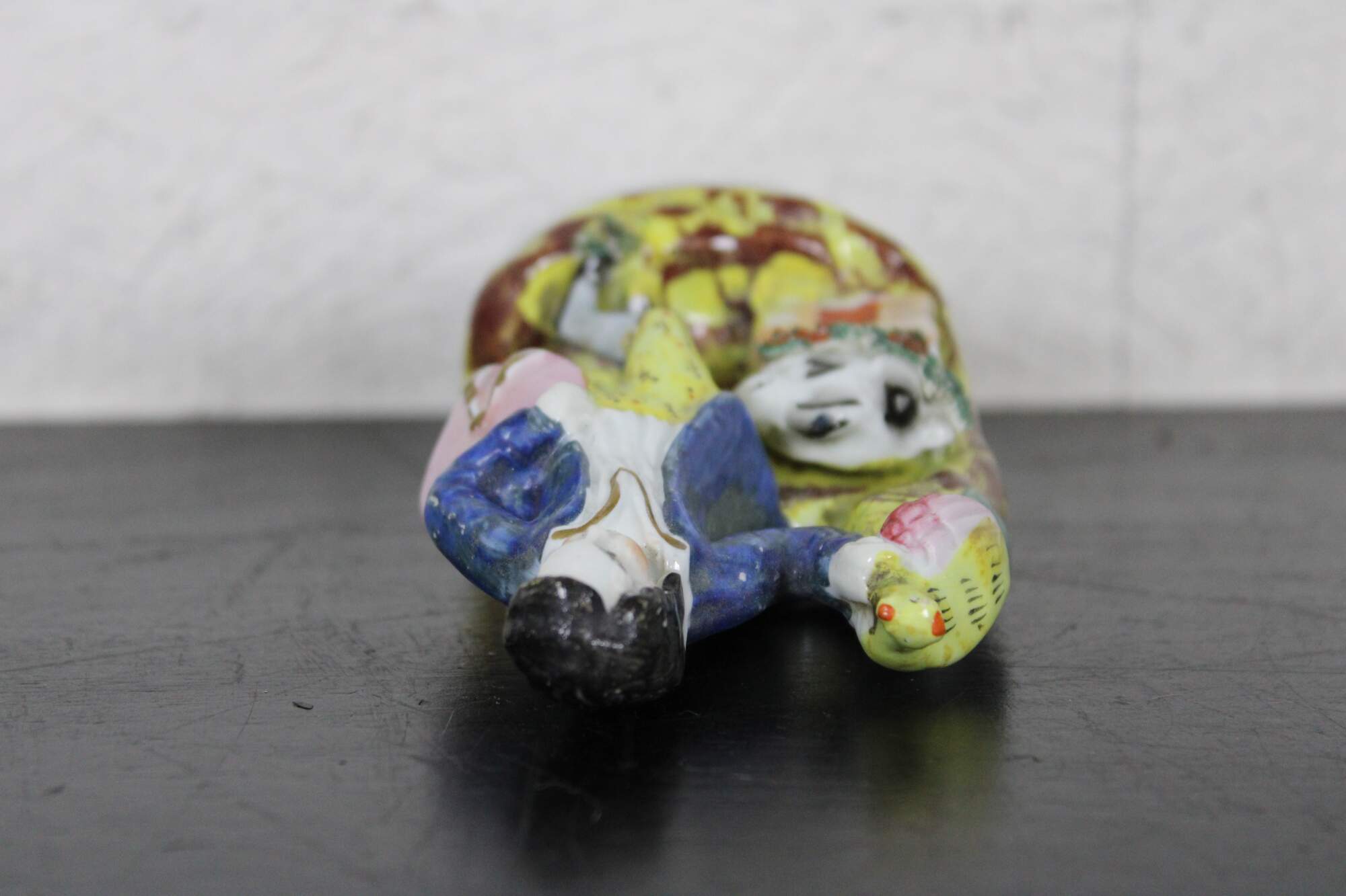 Antique 19th century Staffordshire porcelain figure in the shape of a boy standing next to a rabbit hutch and grasping a pheasant.