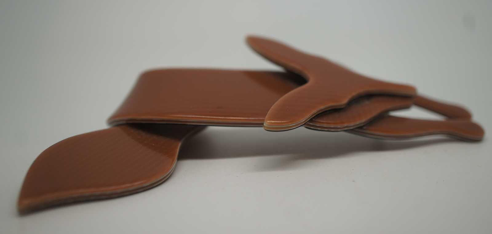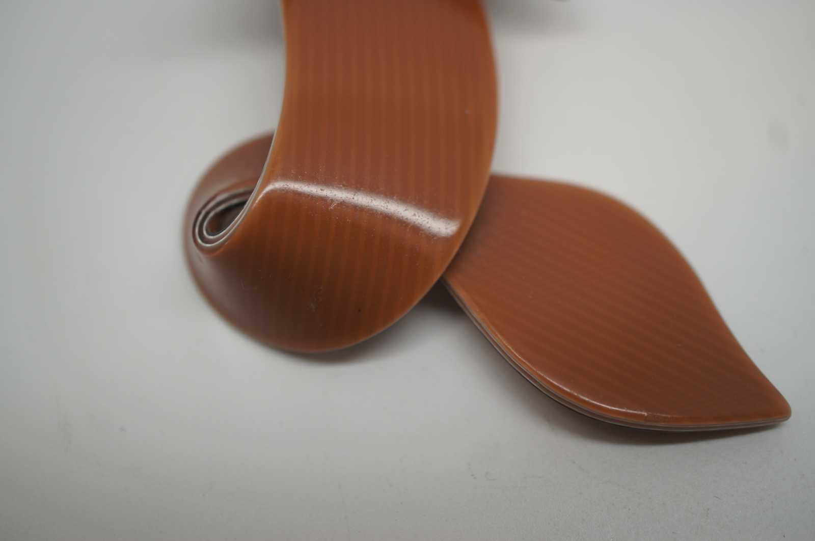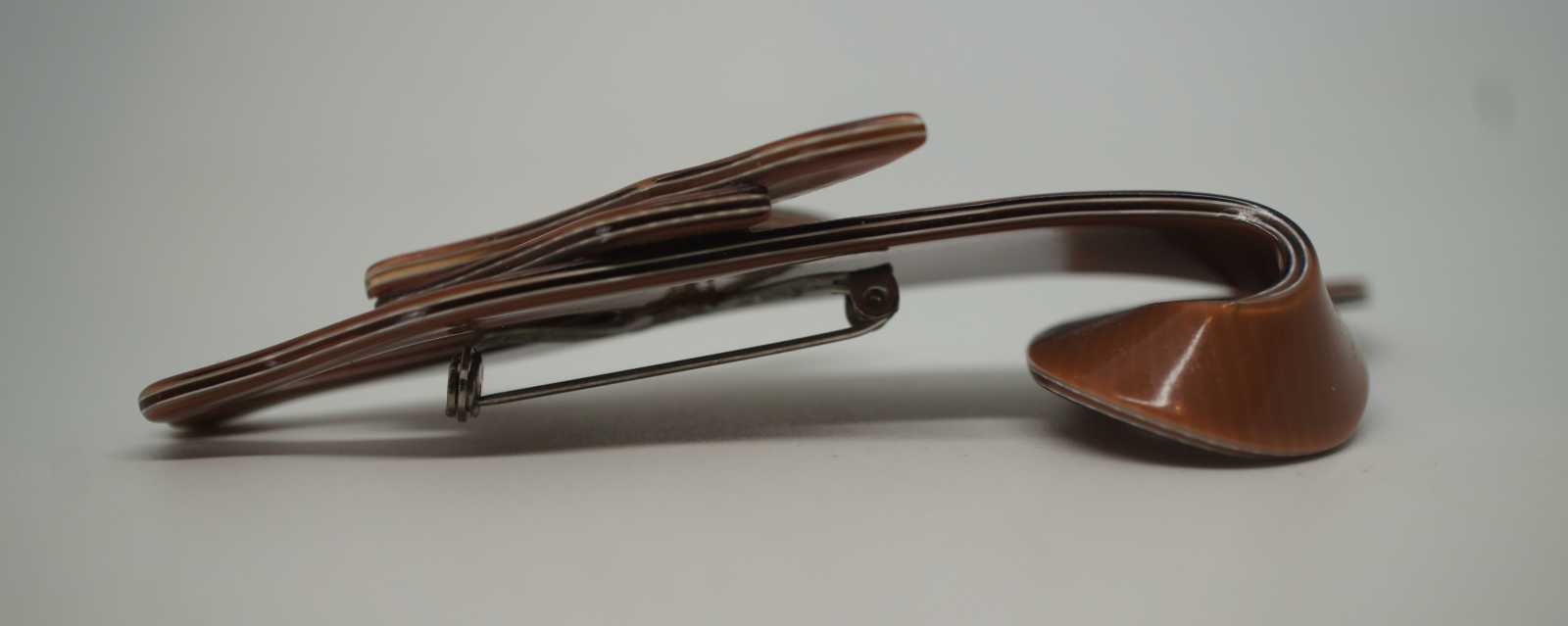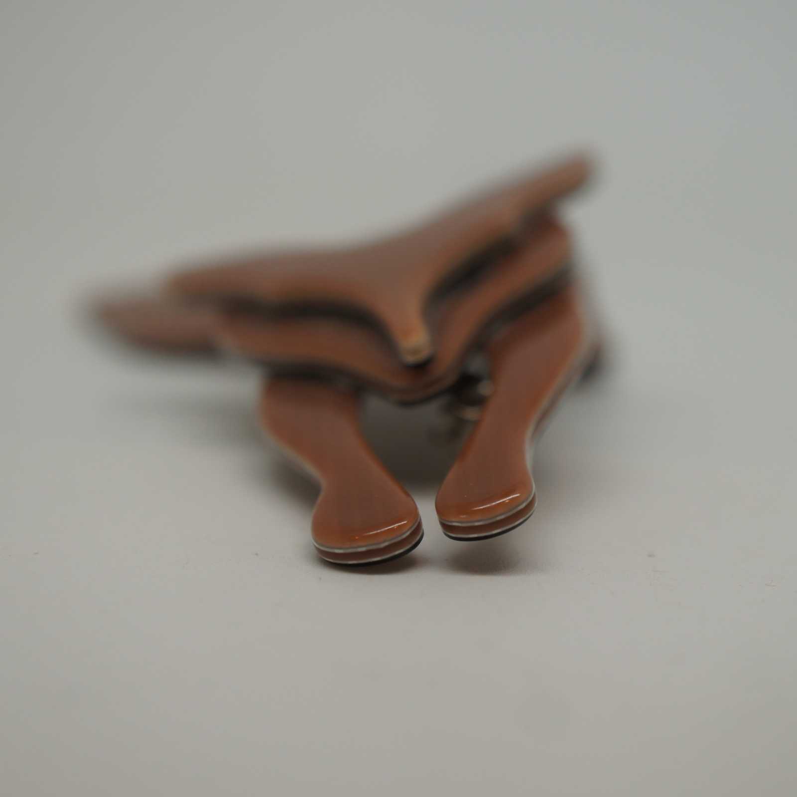 Vintage Lea Stein famous Renard fox shaped pin in subtly striped caramel brown bakelite.