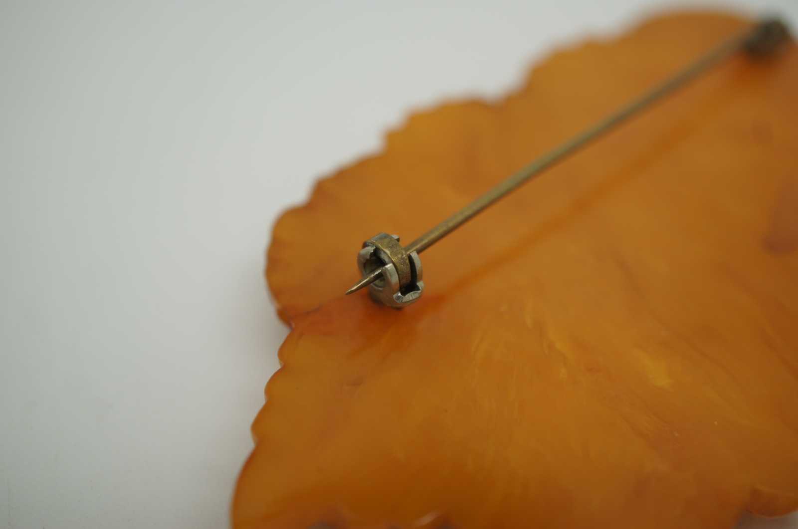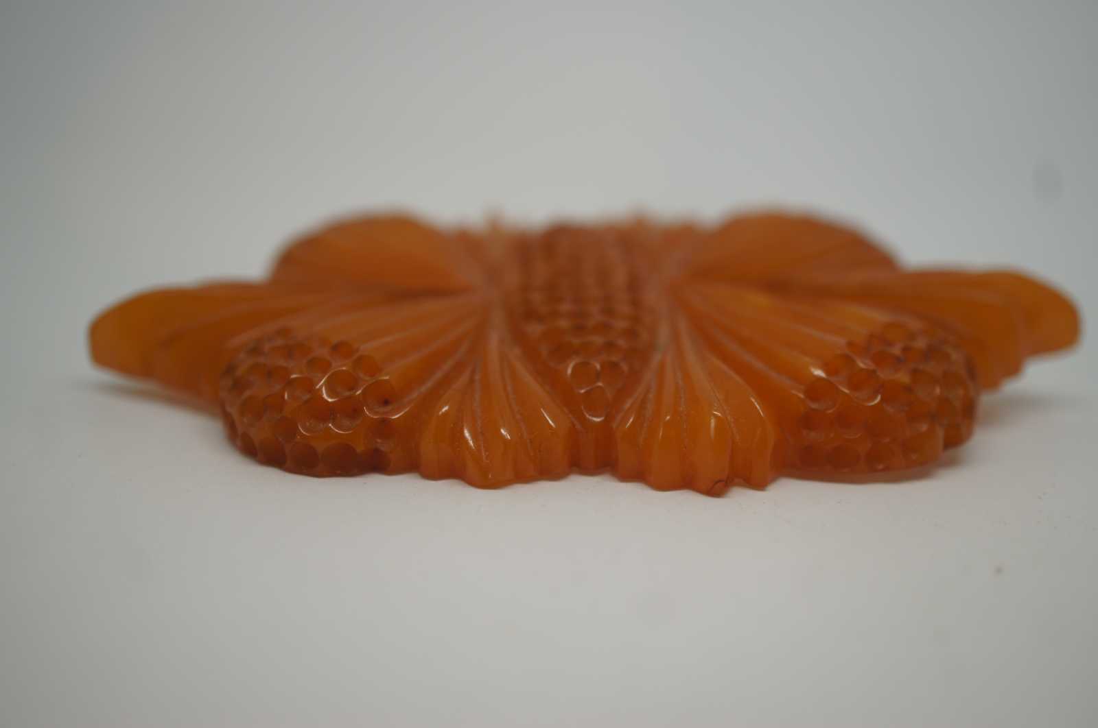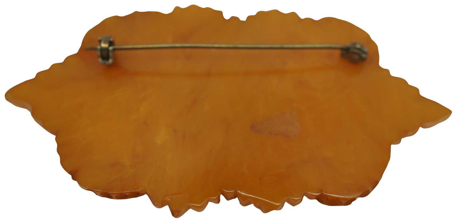 Early to mid 20th century butterscotch or semi translucent orange floral bakelite pin.