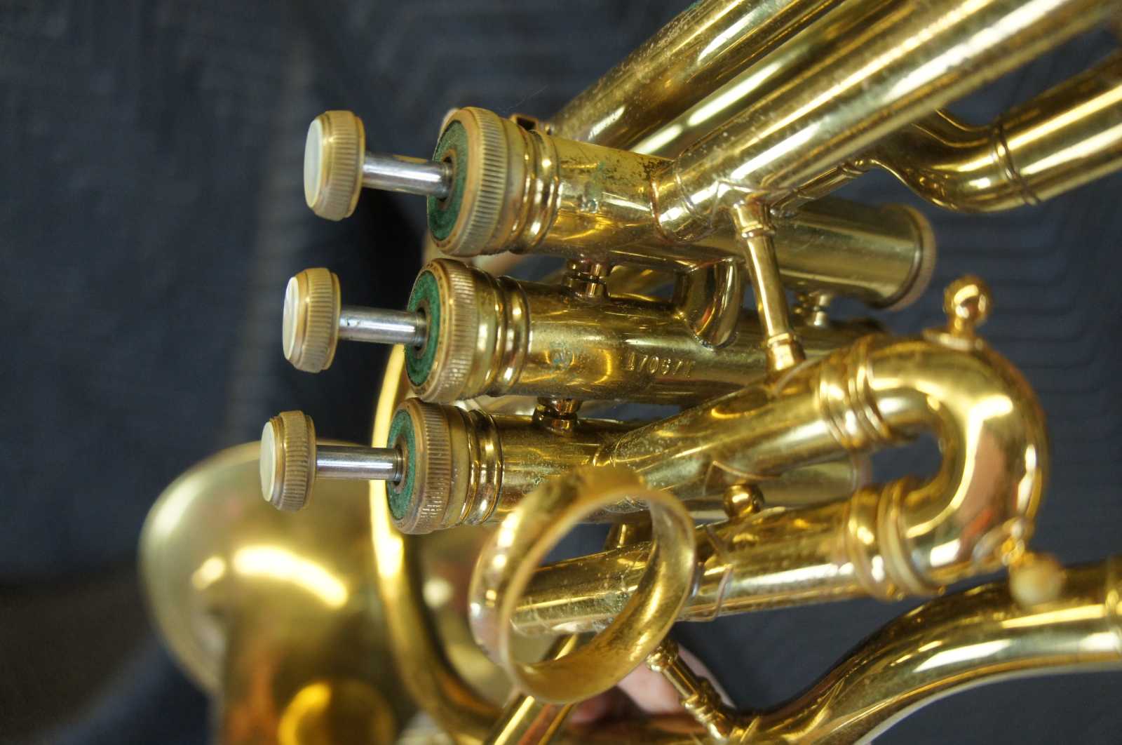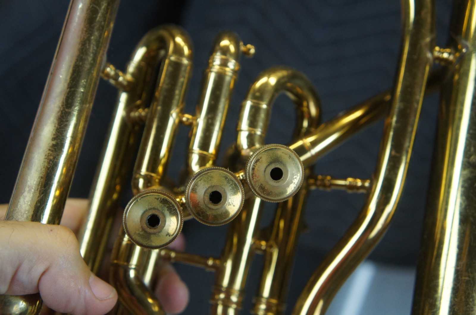 York Band Instrument Company Brass Bariton Euphonium with mother of pear keys. Serial Number 170671, circa 1951-52