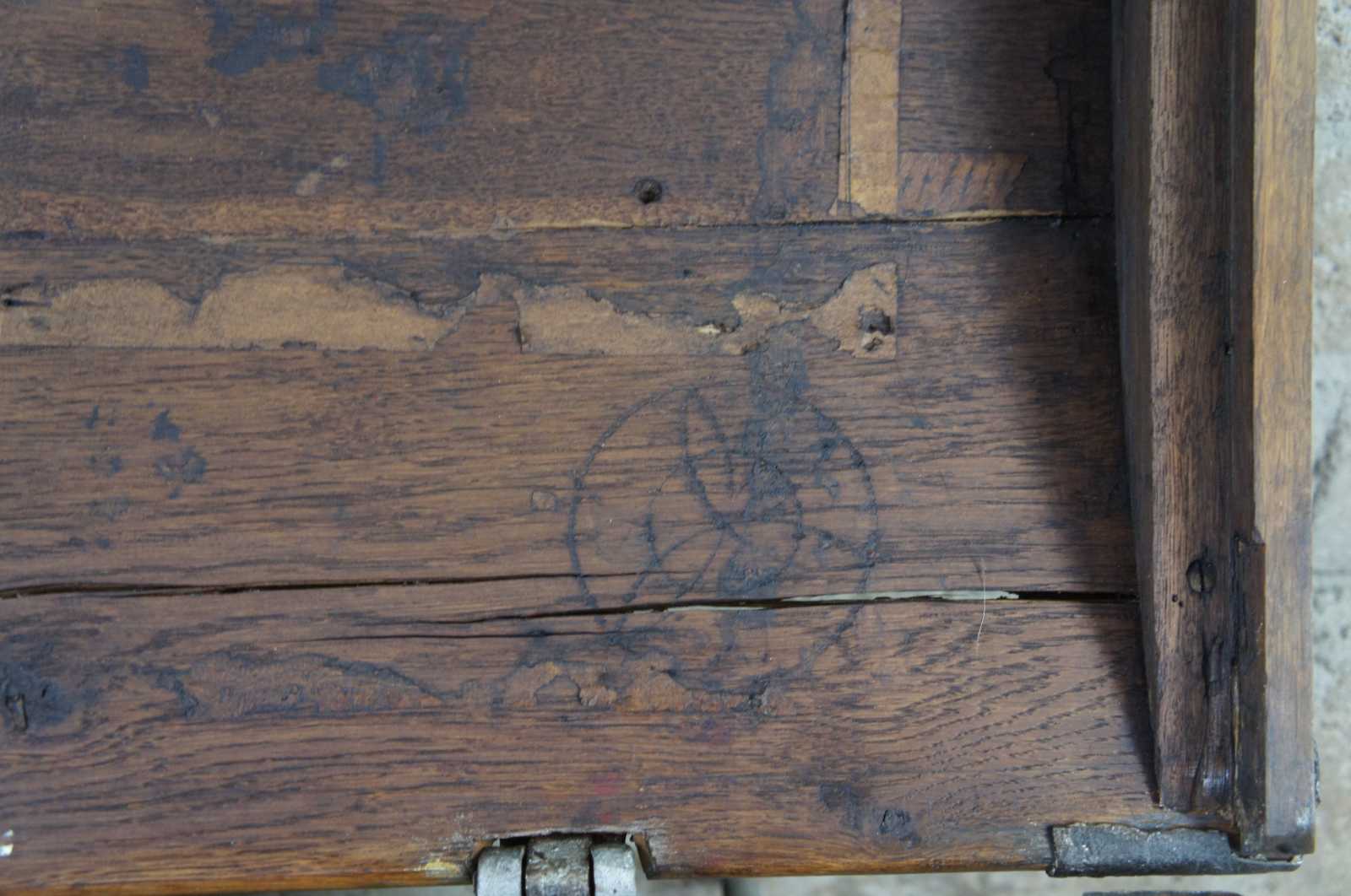 Good antique condition, wear and distressing commensurate with age and use, slitting, working lock.