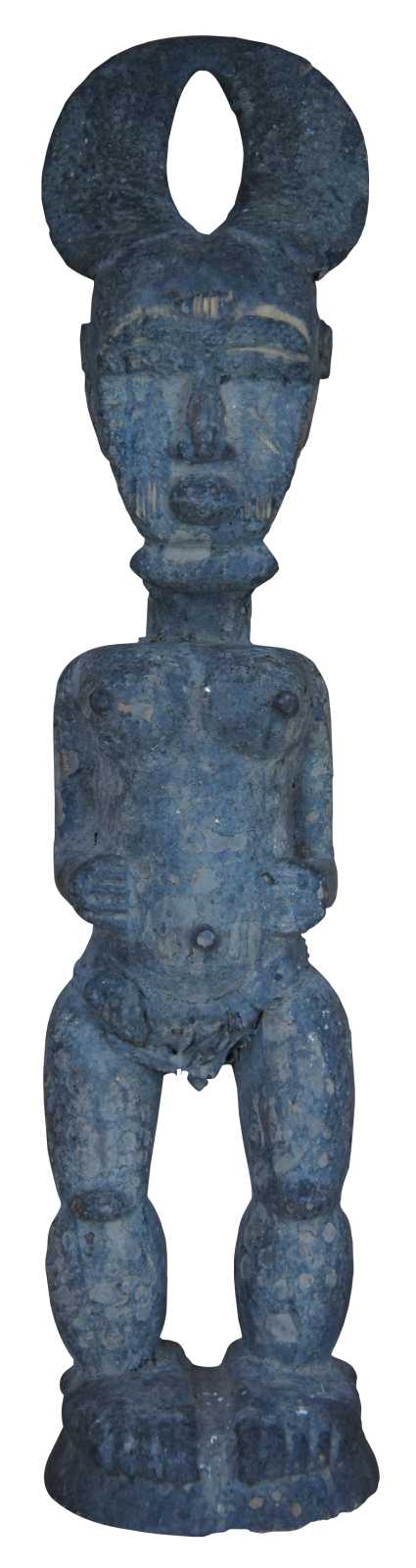 Baule figures can be among the most elegant and designed pieces in Africa. Many show careful execution of face, coiffure and scarification details, with refined forms but no loss of expressiveness and power. The quiet, dignified figures embody spirits from the other world. They functioned as the home of a spirit to whom sacrifices were made and had to be placated with care.