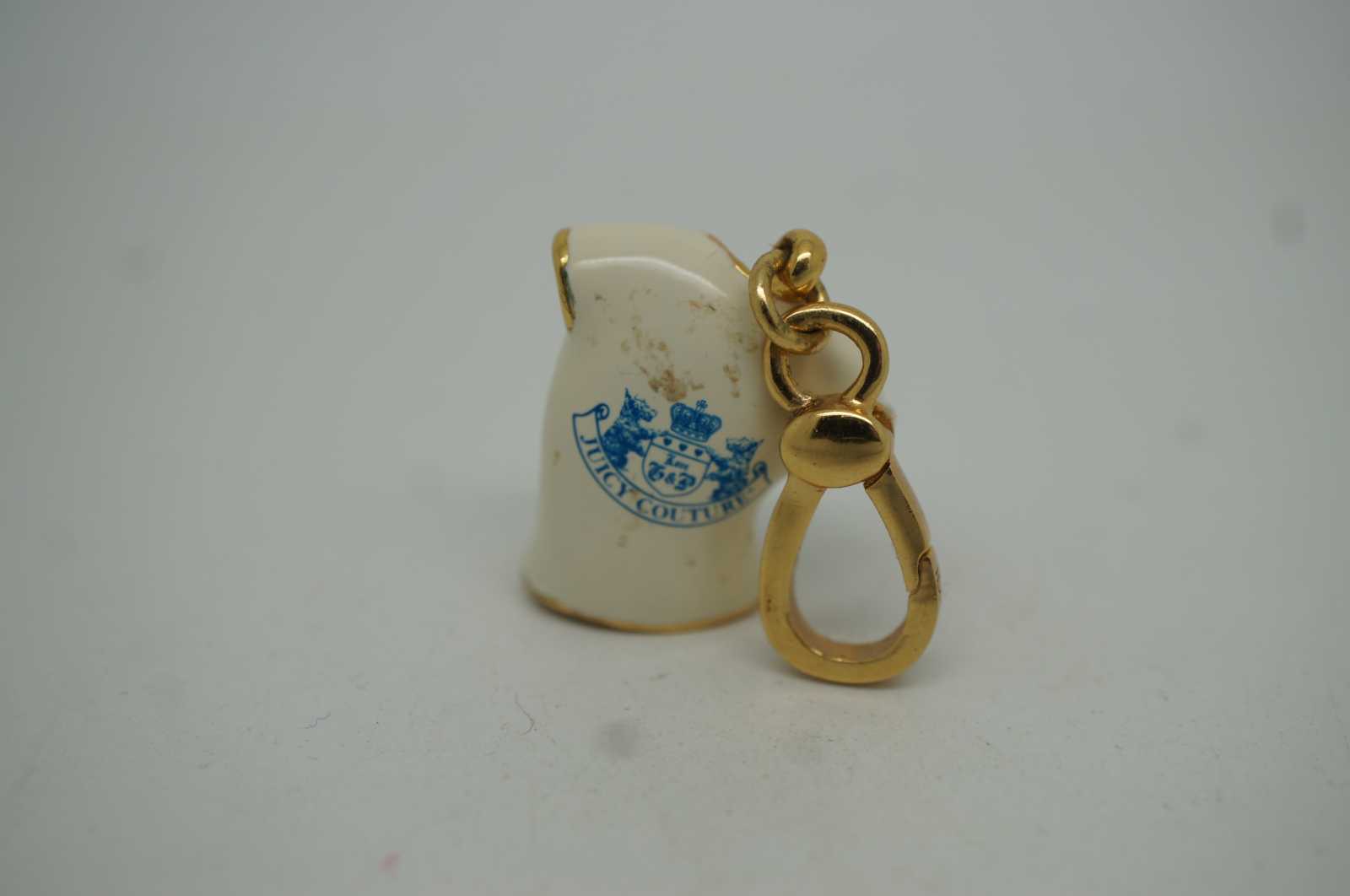 Pair of vintage Juicy Couture charms, a referee’s whistle and a t-shirt charm reading “Prep It Up.”