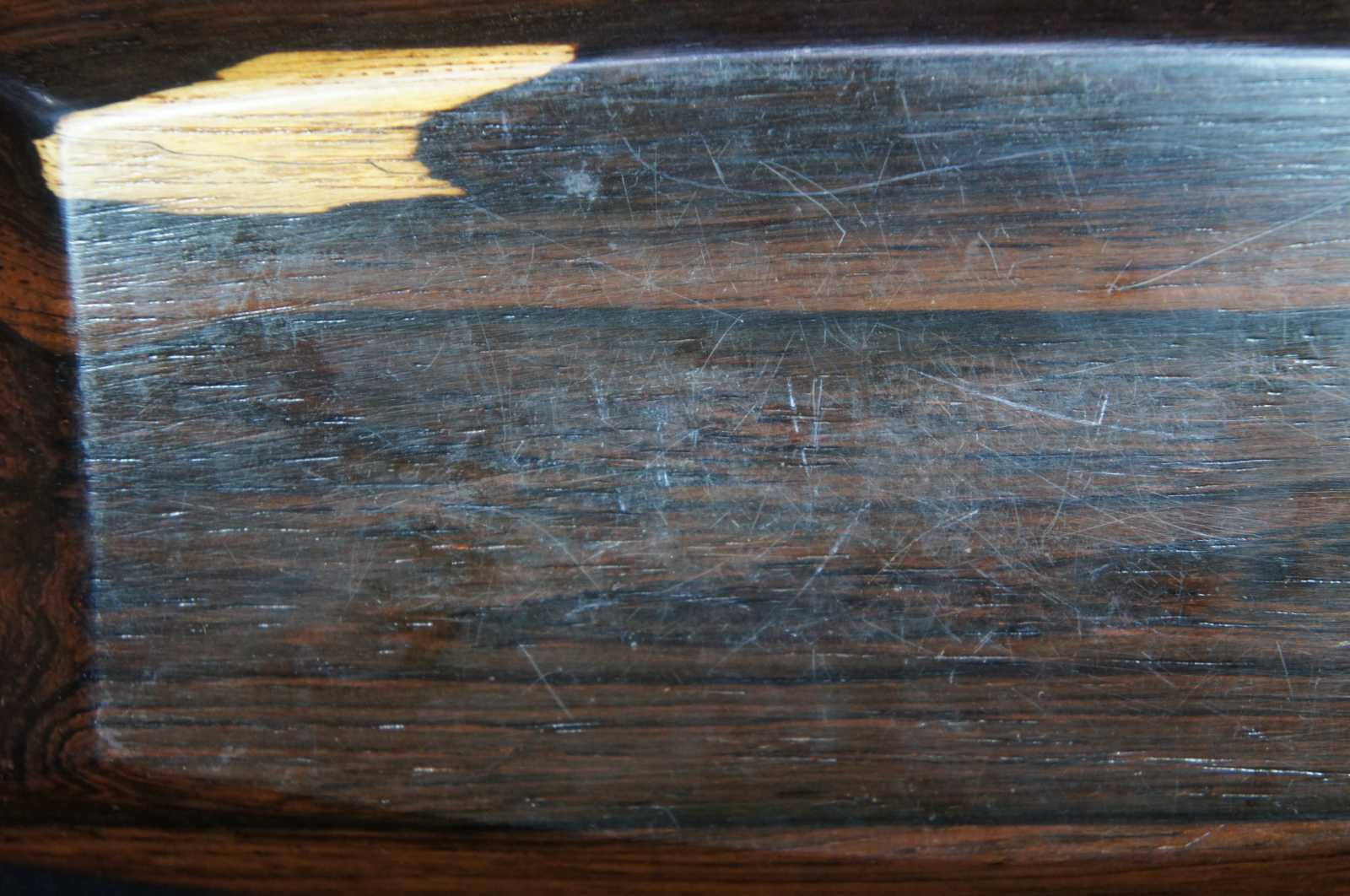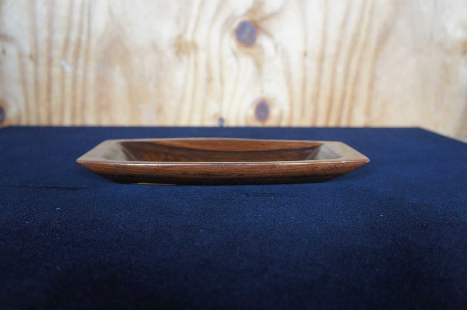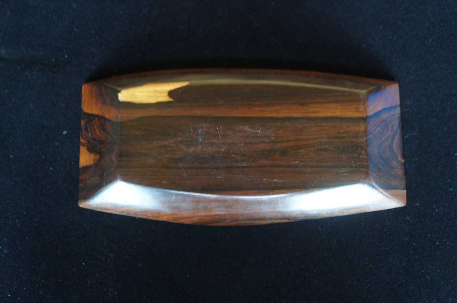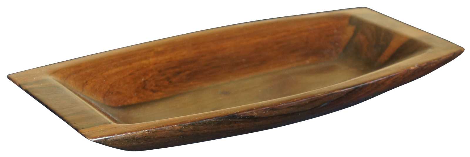 Vintage Mid Century Danish tray or platter. Made of walnut featuring a rectangular and slightly bowed form with raised edge.
