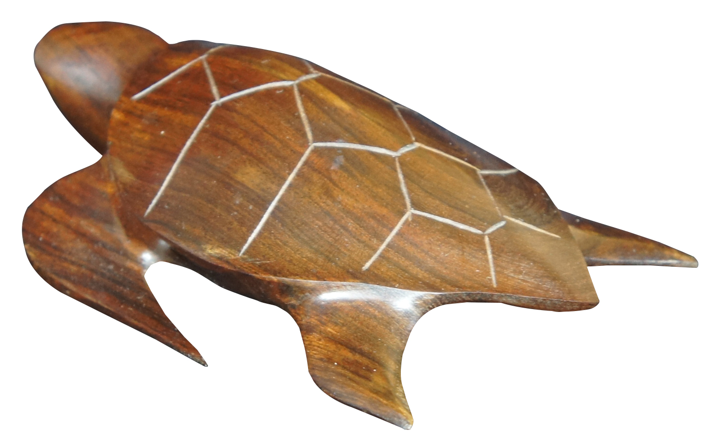 Vintage sea turtle figurine or paperweight. Made of an exotic hardwood featuring a sculpted form with pointy feet.