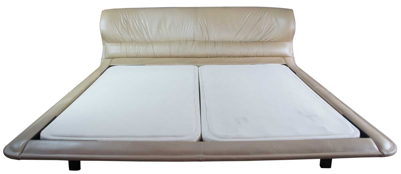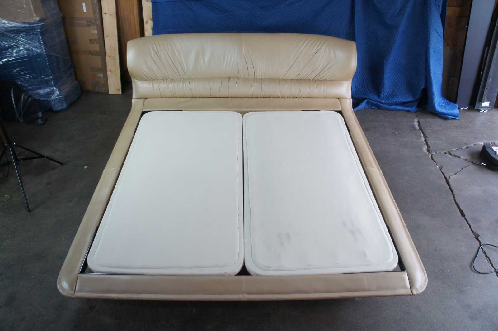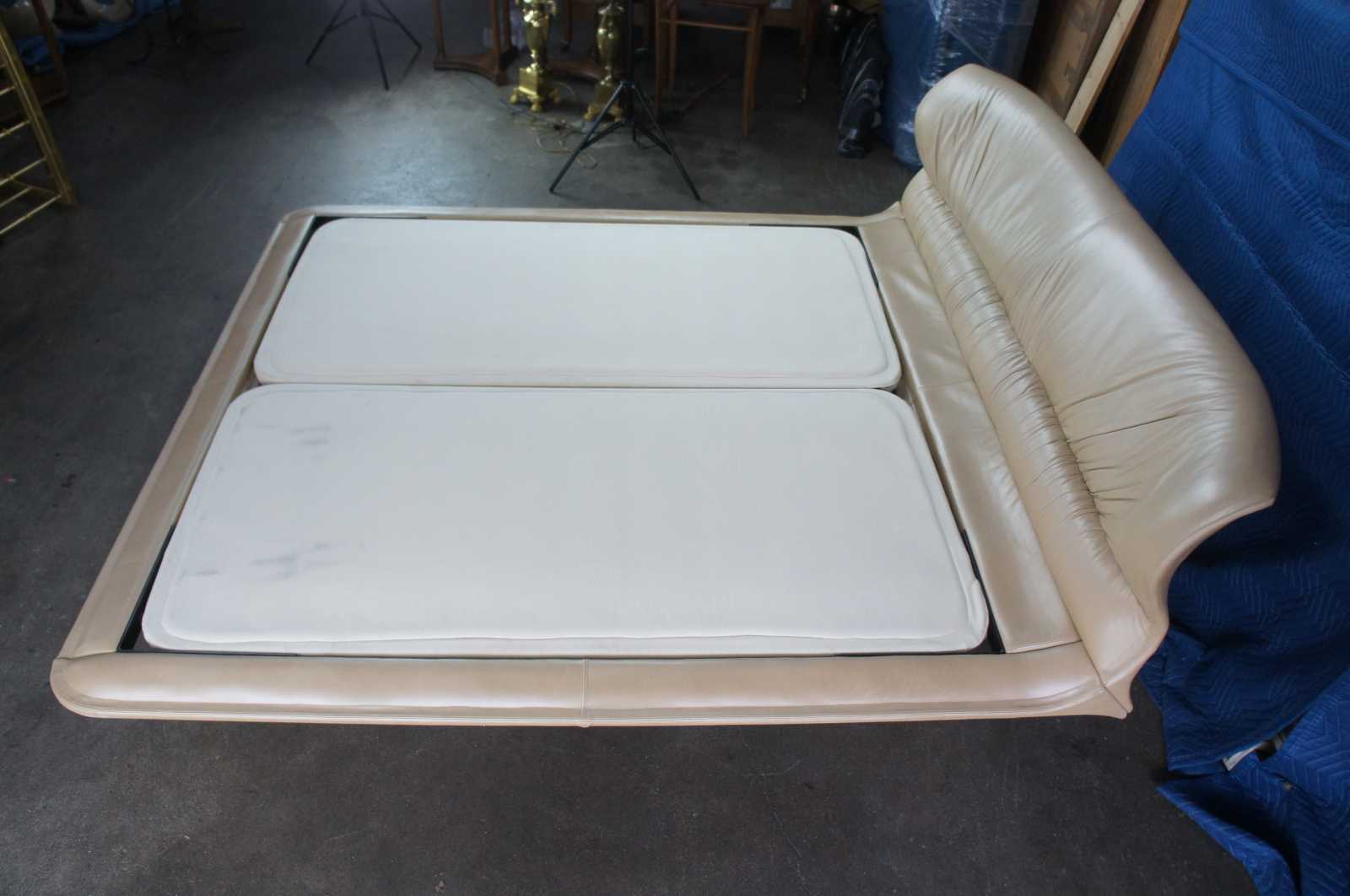 Iconic mid century modern Fratelli Saporiti Italian king size ""Wave"" bed by Giovanni Offredi, circa 1970s. Made of leather featuring steel frame with low profile padded box springs.