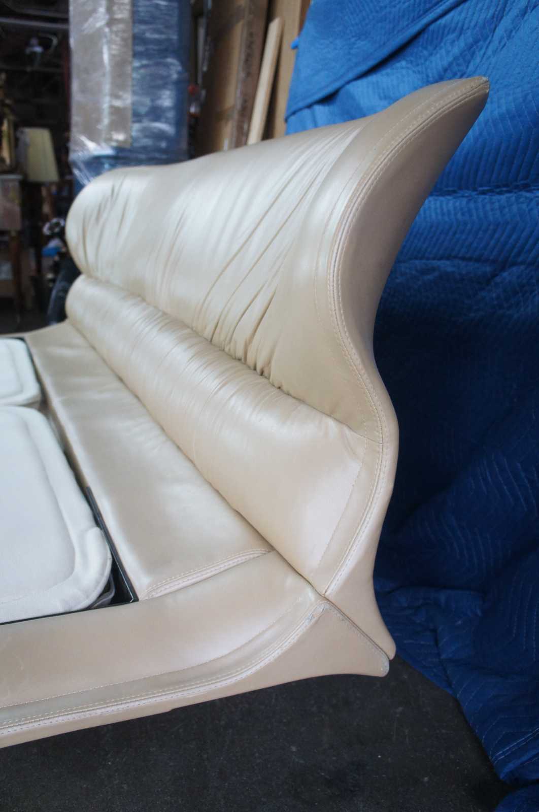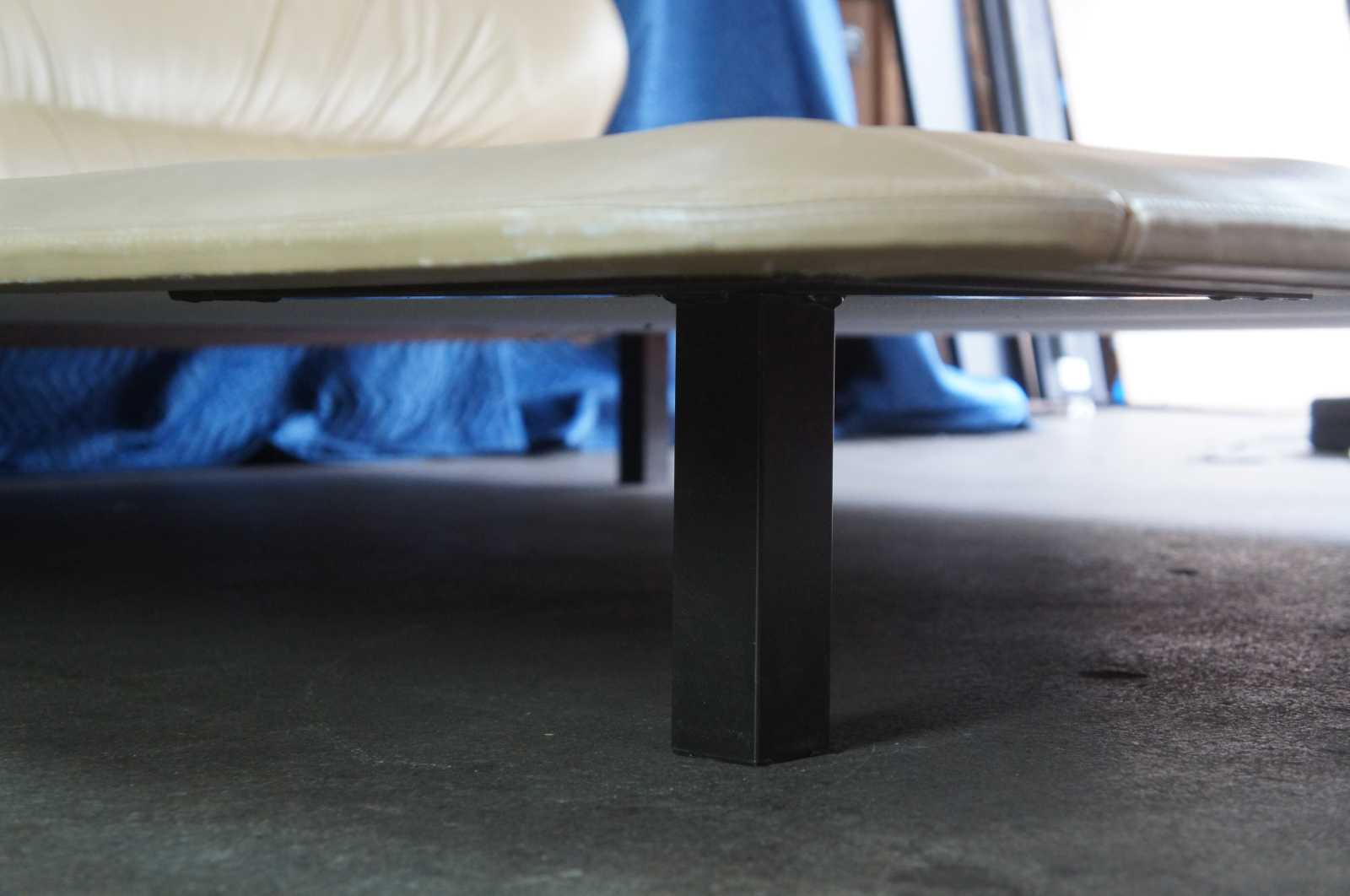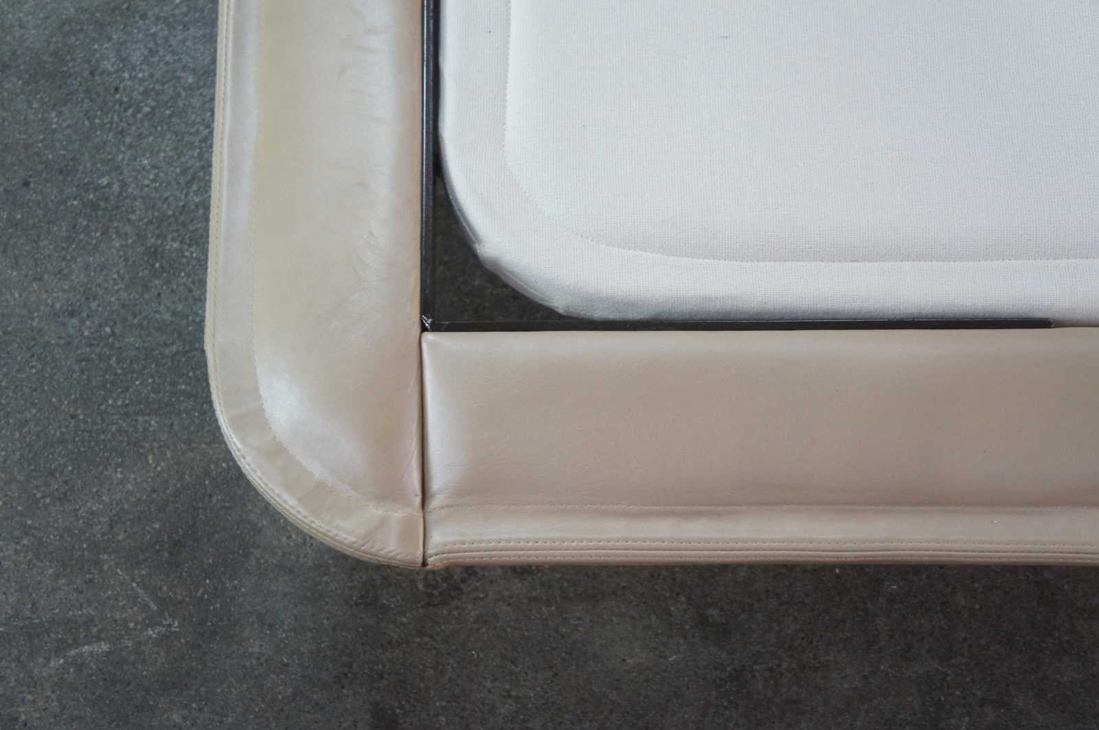 Iconic mid century modern Fratelli Saporiti Italian king size ""Wave"" bed by Giovanni Offredi, circa 1970s. Made of leather featuring steel frame with low profile padded box springs.