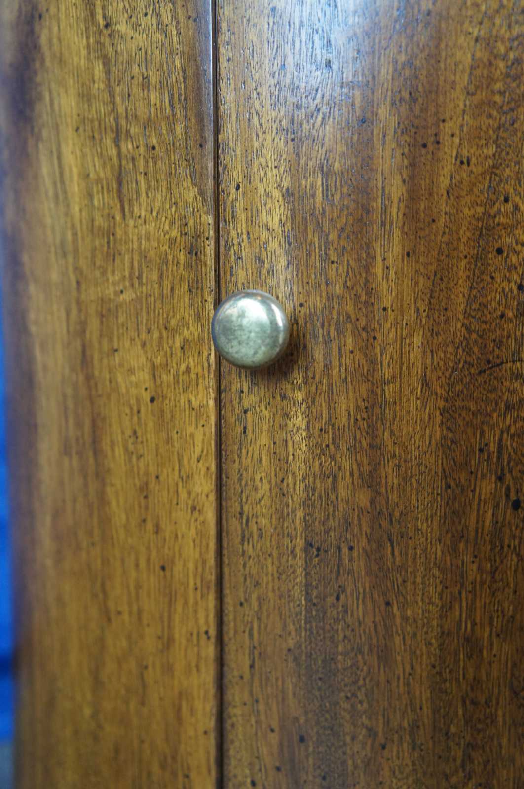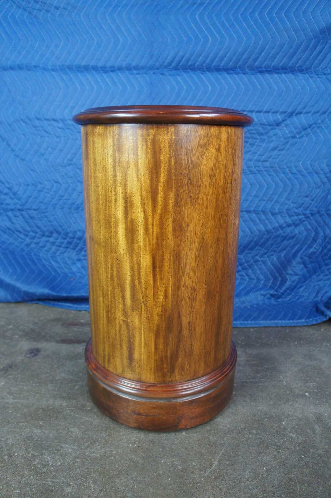 Mid Century 20th Century Louis Phillipe, Empire or Napoleon inspired ""Somno"" Table. Cylindrical modern form made from mahogany with hinged door, marble insert, and brass pull. The petite form makes it perfect for use as a pedestal, smoke stand or for displaying a sculpture. Meaning sleep in Latin 'Somno' Tables were originally intended as furniture for the bedchamber, now, however, they have acquired a versatile role and could be used as a side table or act as an elegant base for a statue in the centre of a room or corridor.
