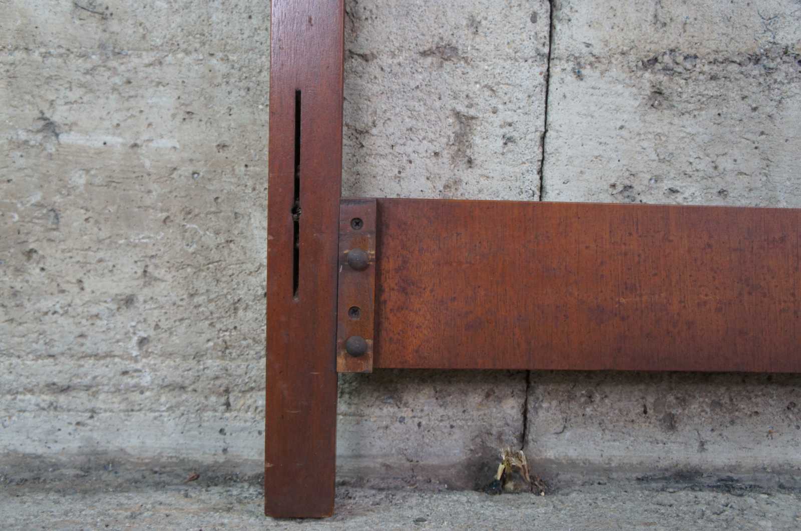 1966 Mid century Drexel Bordeaux French Provincial full size bed headboard. Made from walnut with a serpentine form and pierced back. 206-540.