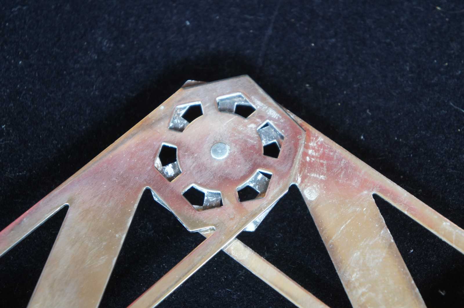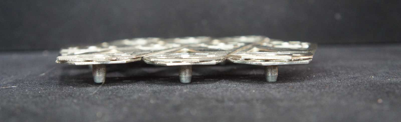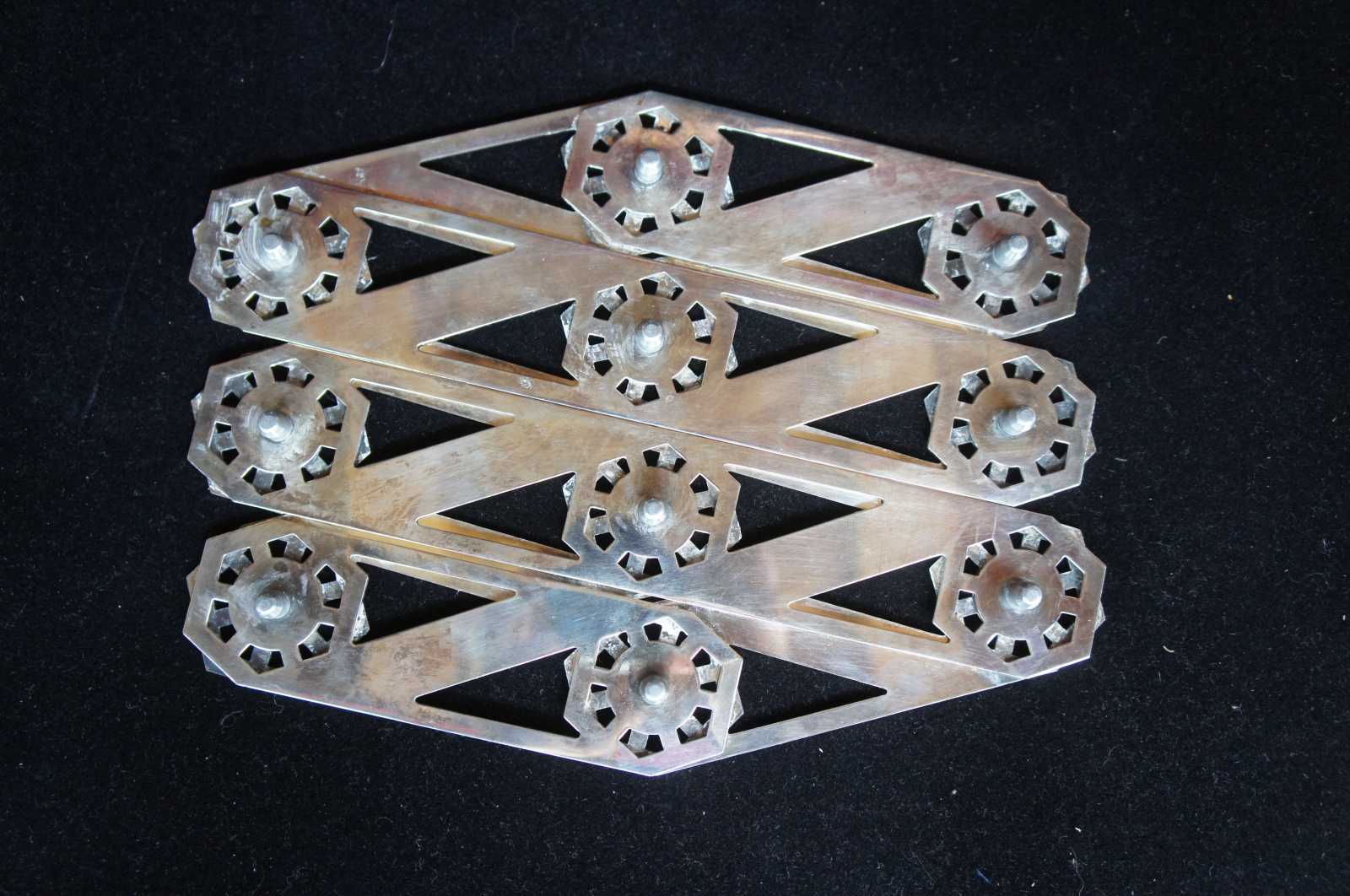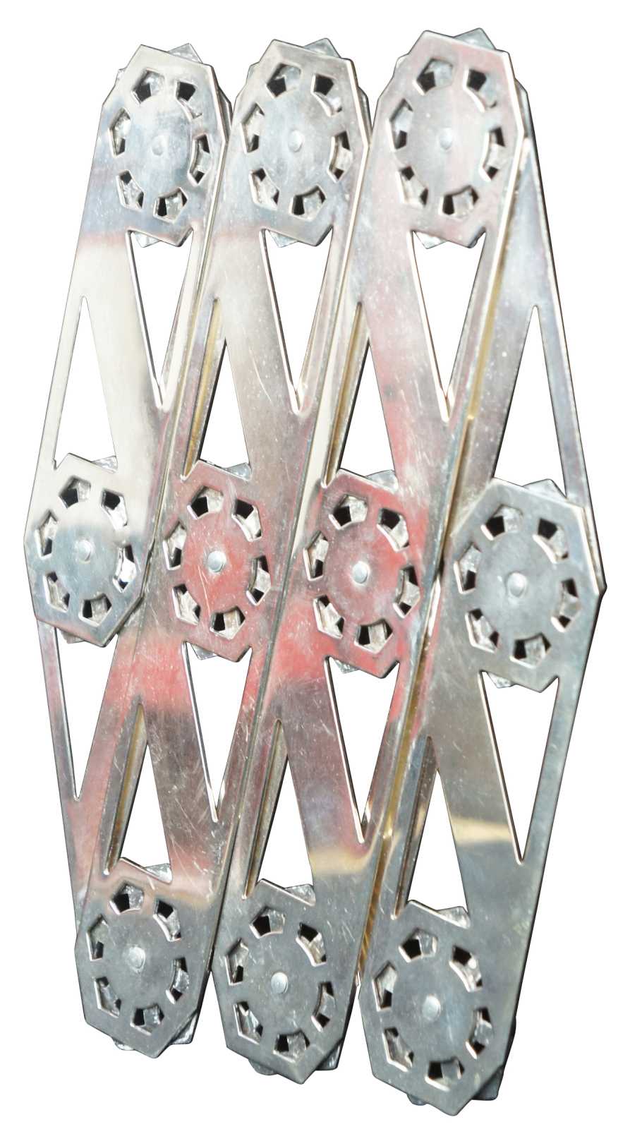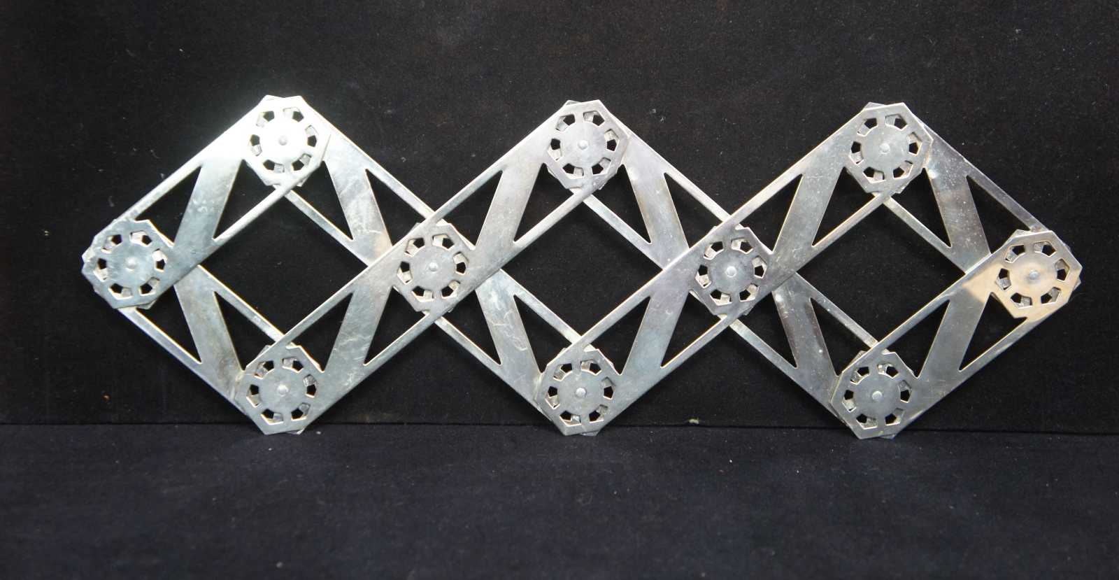 Adjustable silver tone machine age, accordion style trivet.