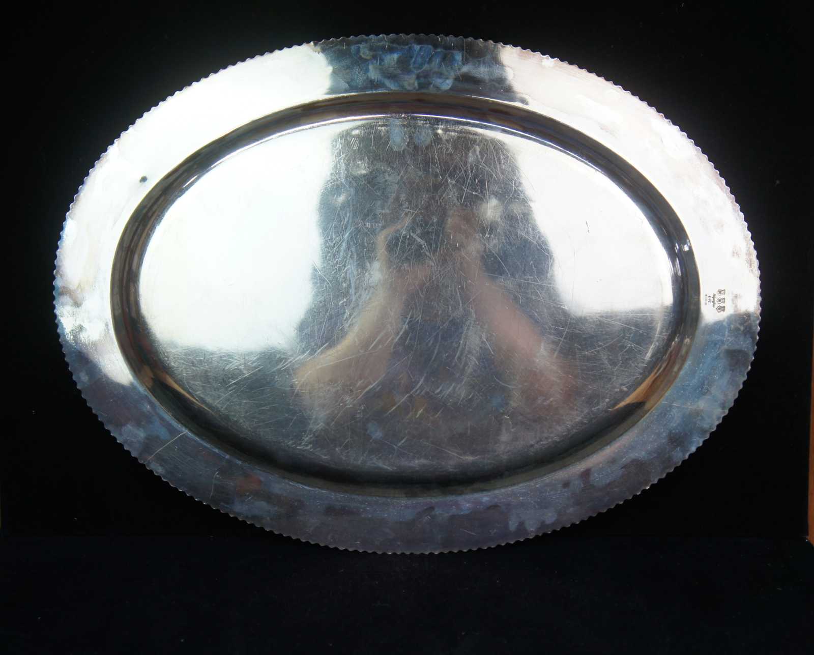 Electroplated Copper Oval Serving Tray with an ornate gadrooning edge