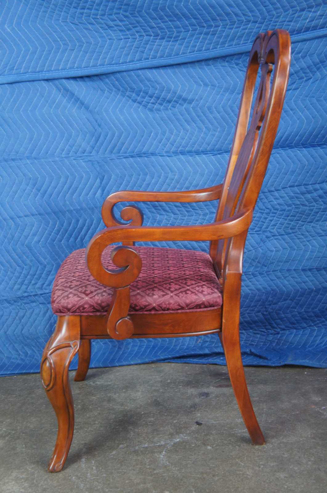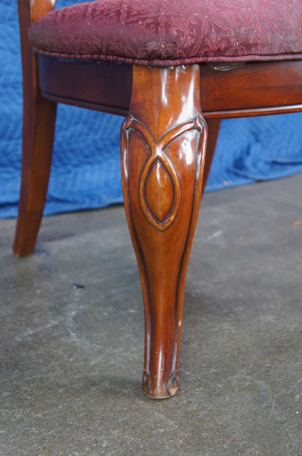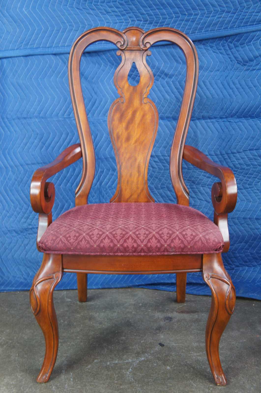 Six vintage mahogany Queen Anne dining chairs. Made of mahogany featuring serpentine form with fluting and urn shaped splat back support.