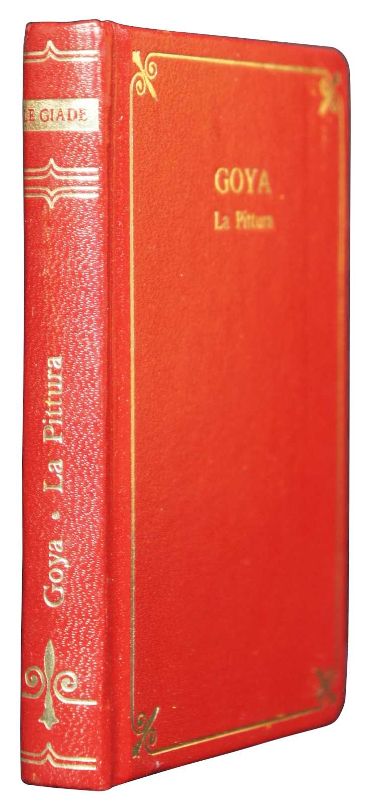 Vintage 1977 pocket book by Le Giade about Francisco Goyas' paintings (la pittura) and life. Leather bound in red. This book was currated by Enrique Lafuente Ferrari.