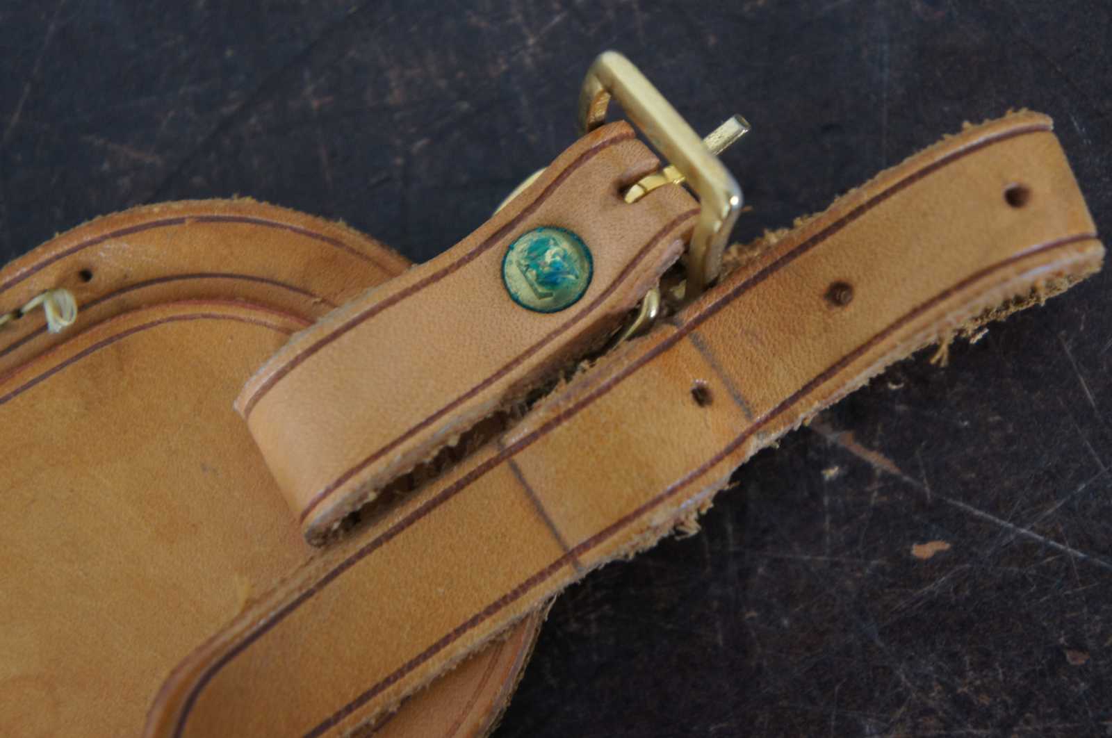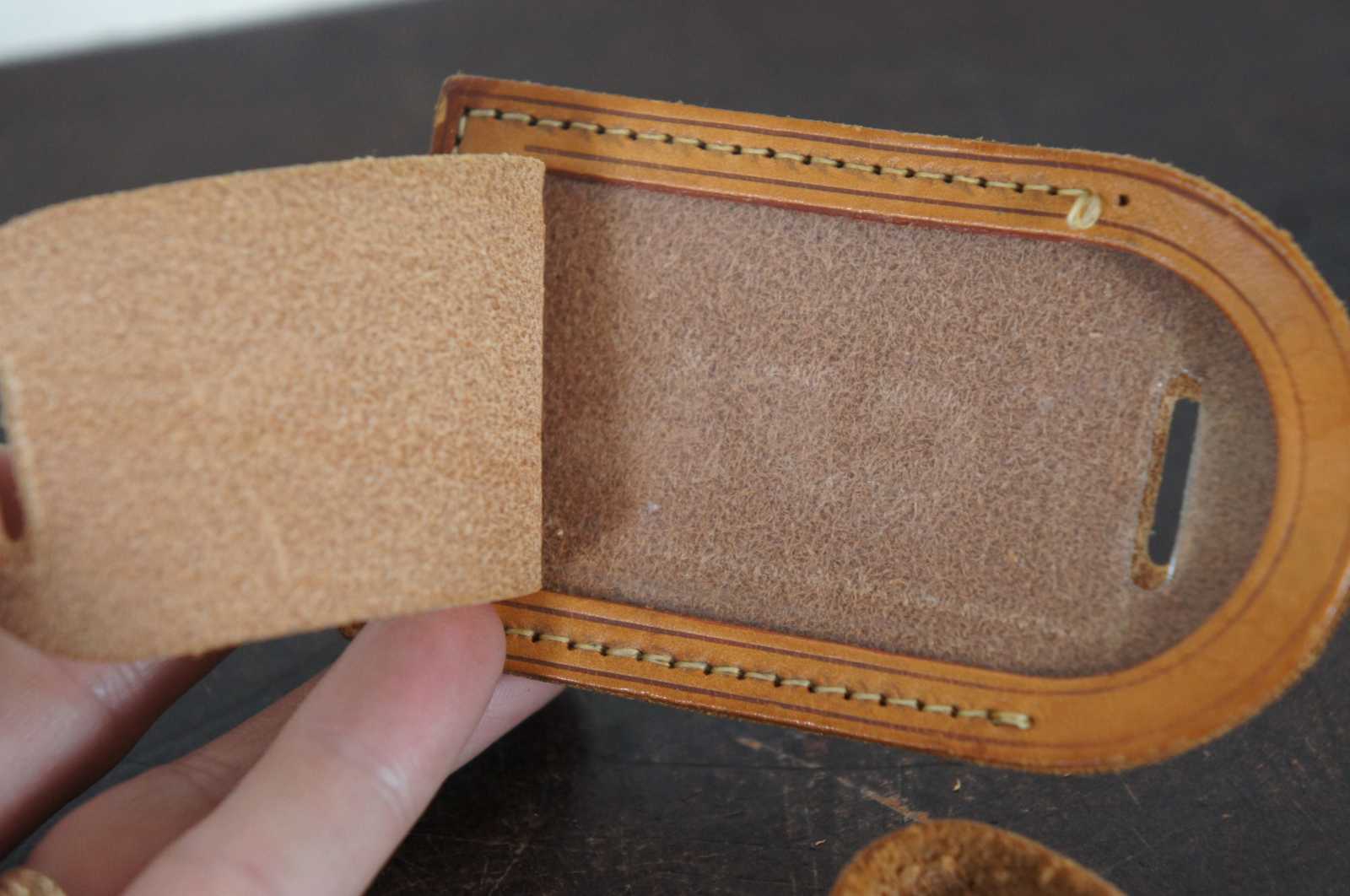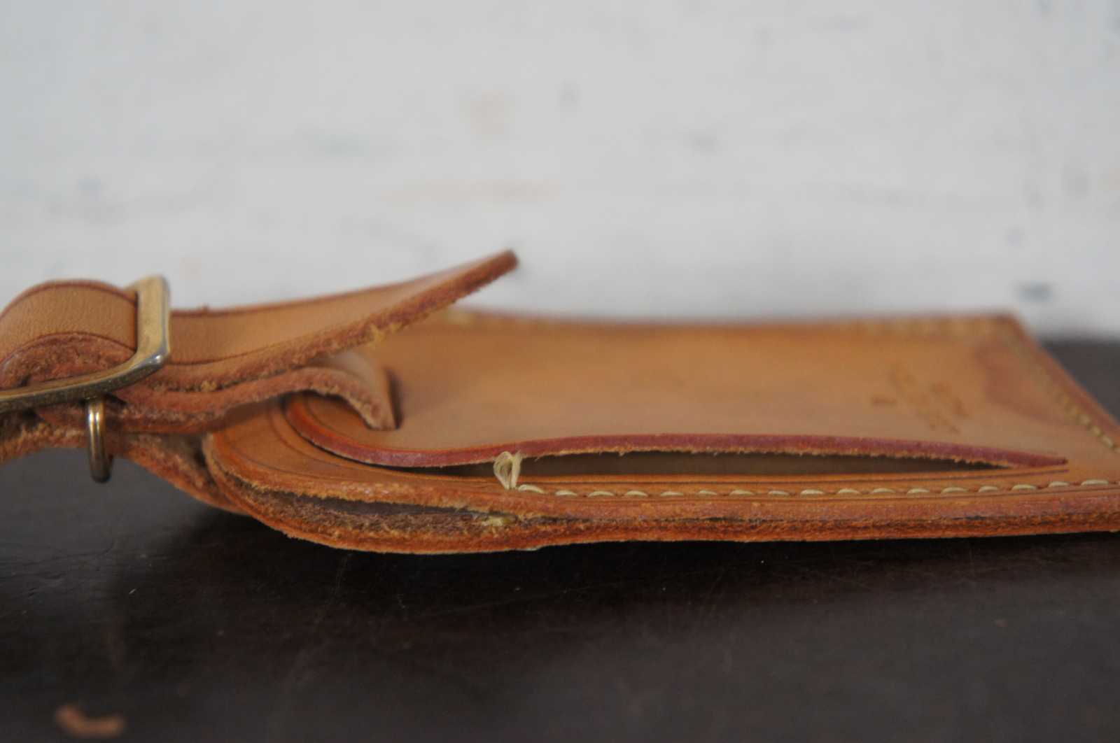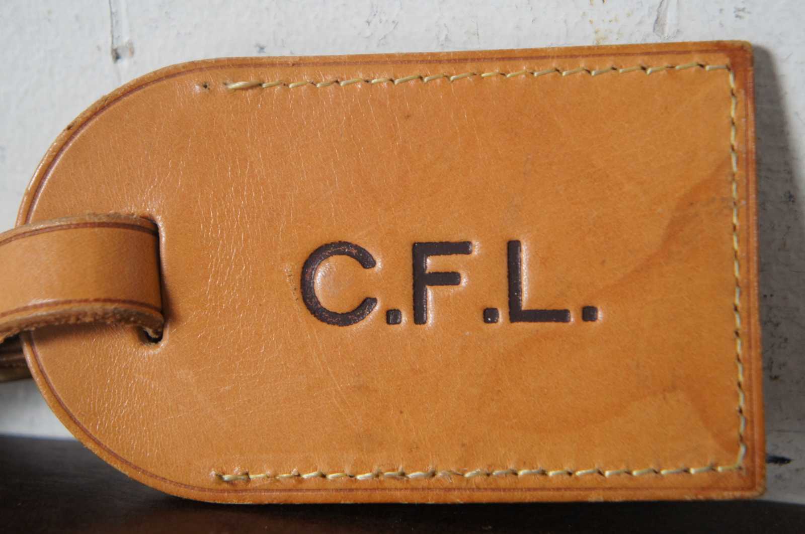 Vintage pre owned Louis Vuitton Malletier light brown leather luggage tag, monogrammed with the initials CFL.