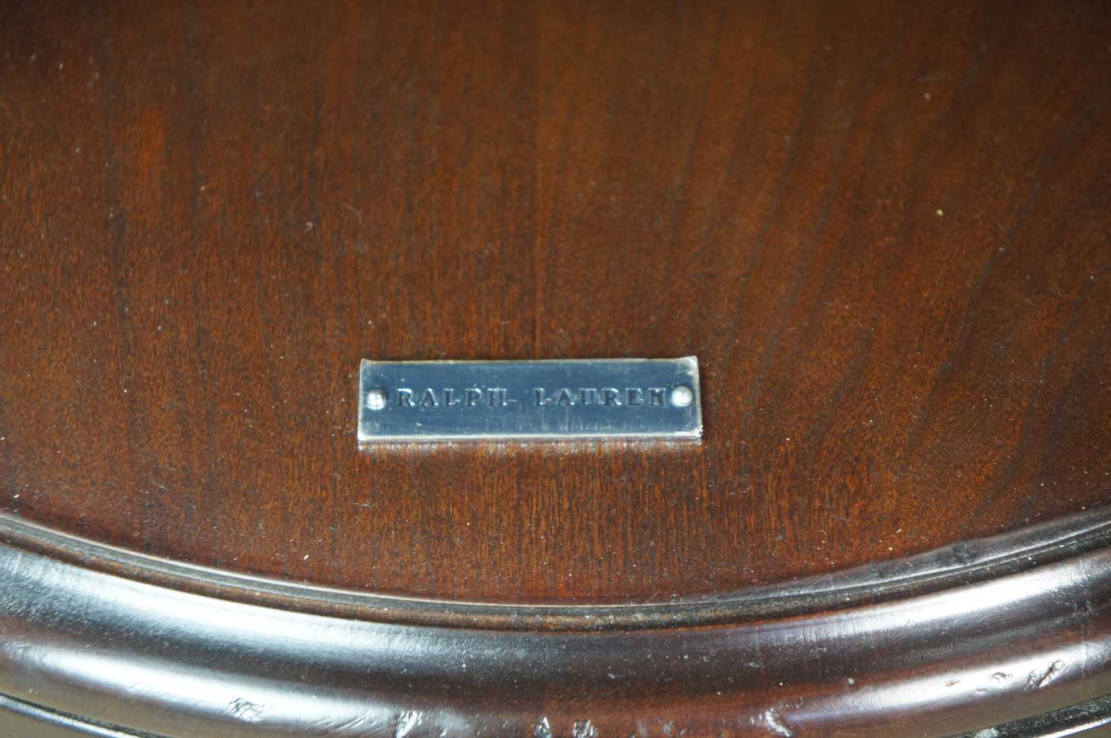 Two Henredon for Ralph Lauren drum table or somno cabinets. Made of mahogany featuring round form with lower cabinet.
