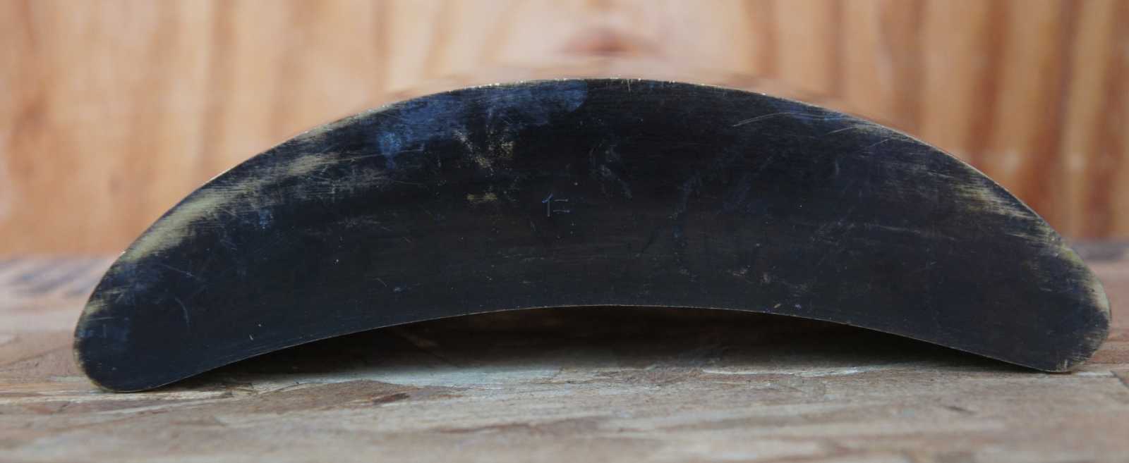 Mid Century crescent shaped vessel. Potentially an old vase or canteen. Marked along base.