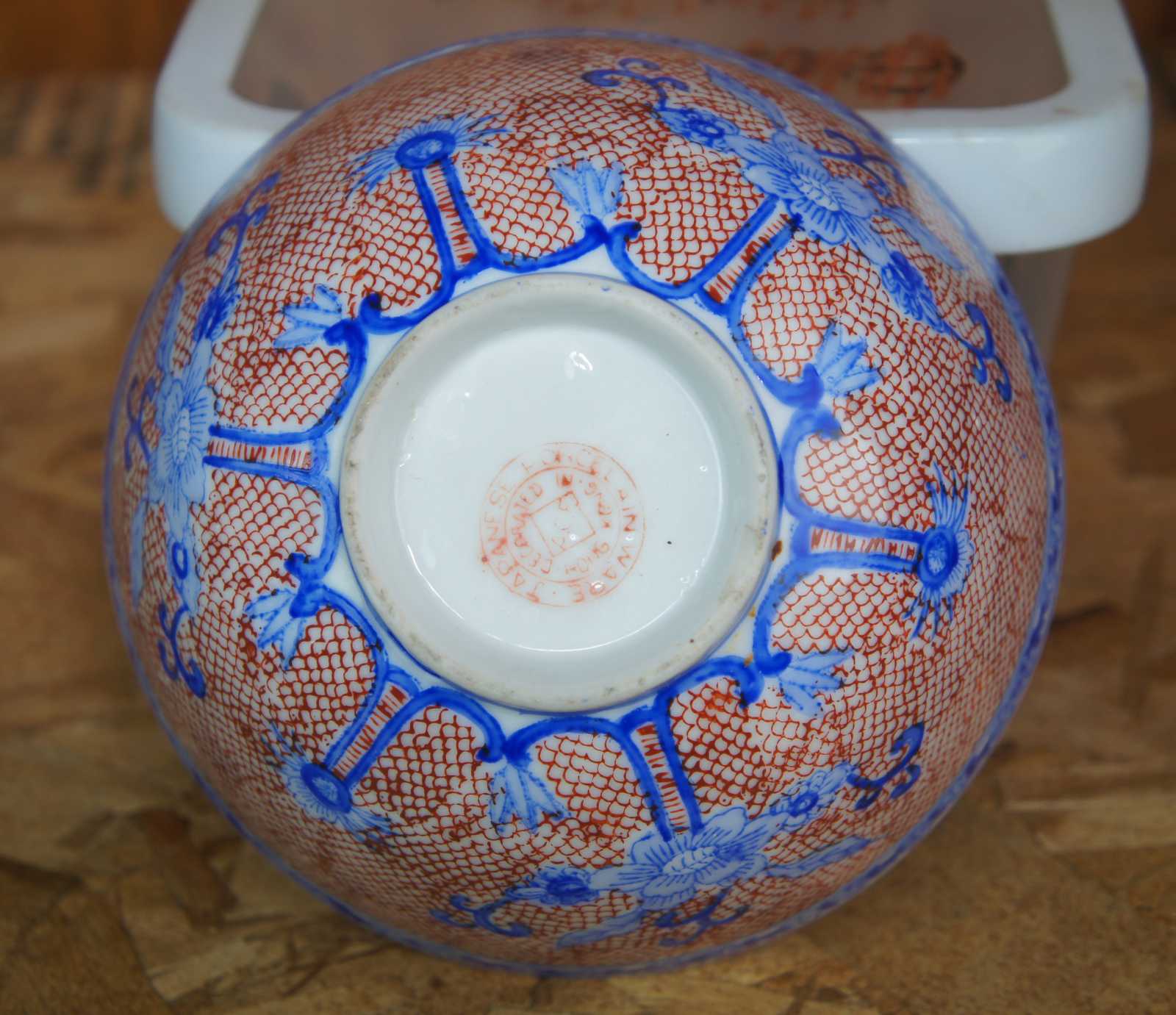 2 hand painted Imari porcelain bowls, circa second half of 20th century. Marked ACF Porcelain ware japan, decorated in Hong Kong