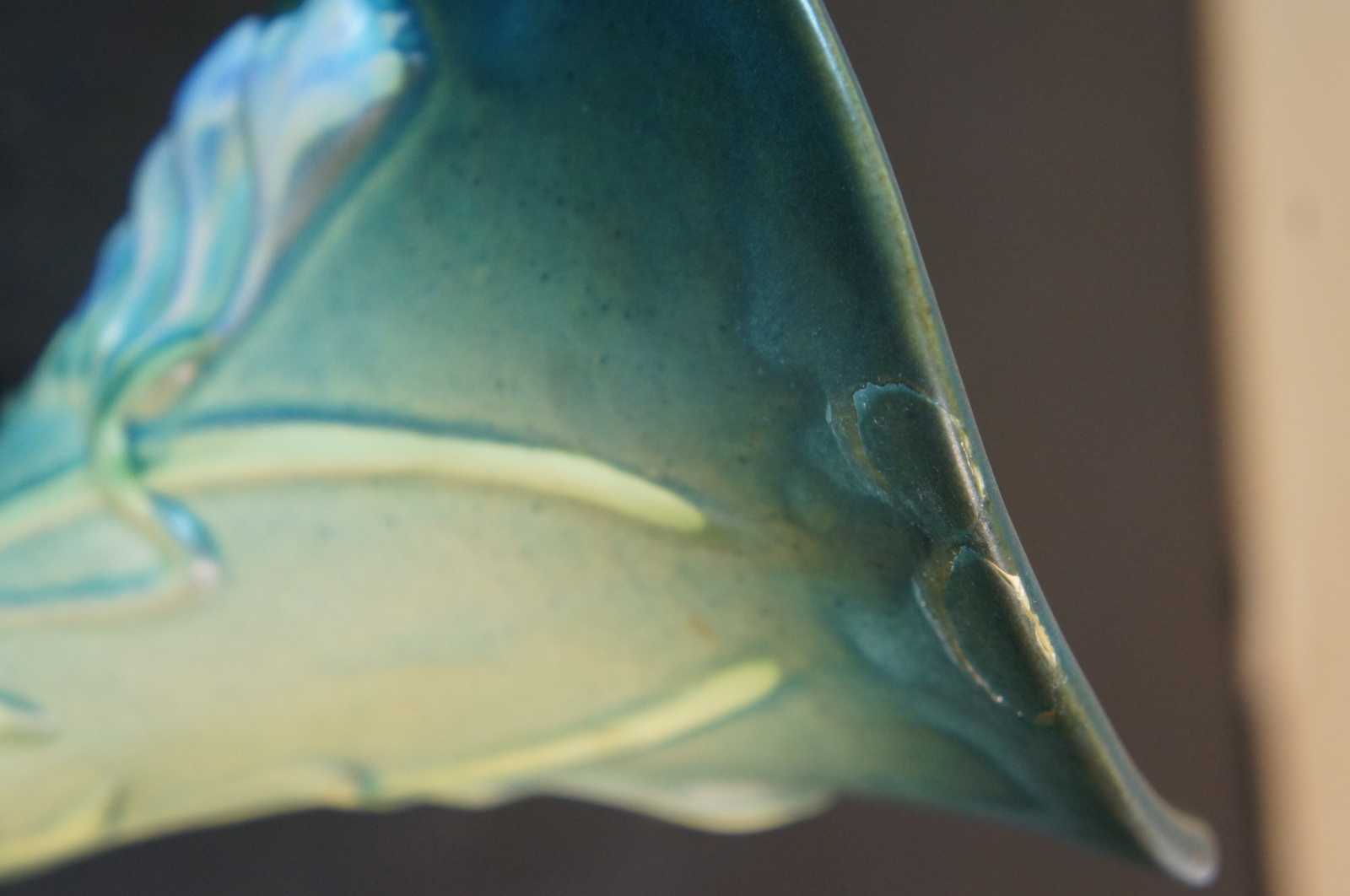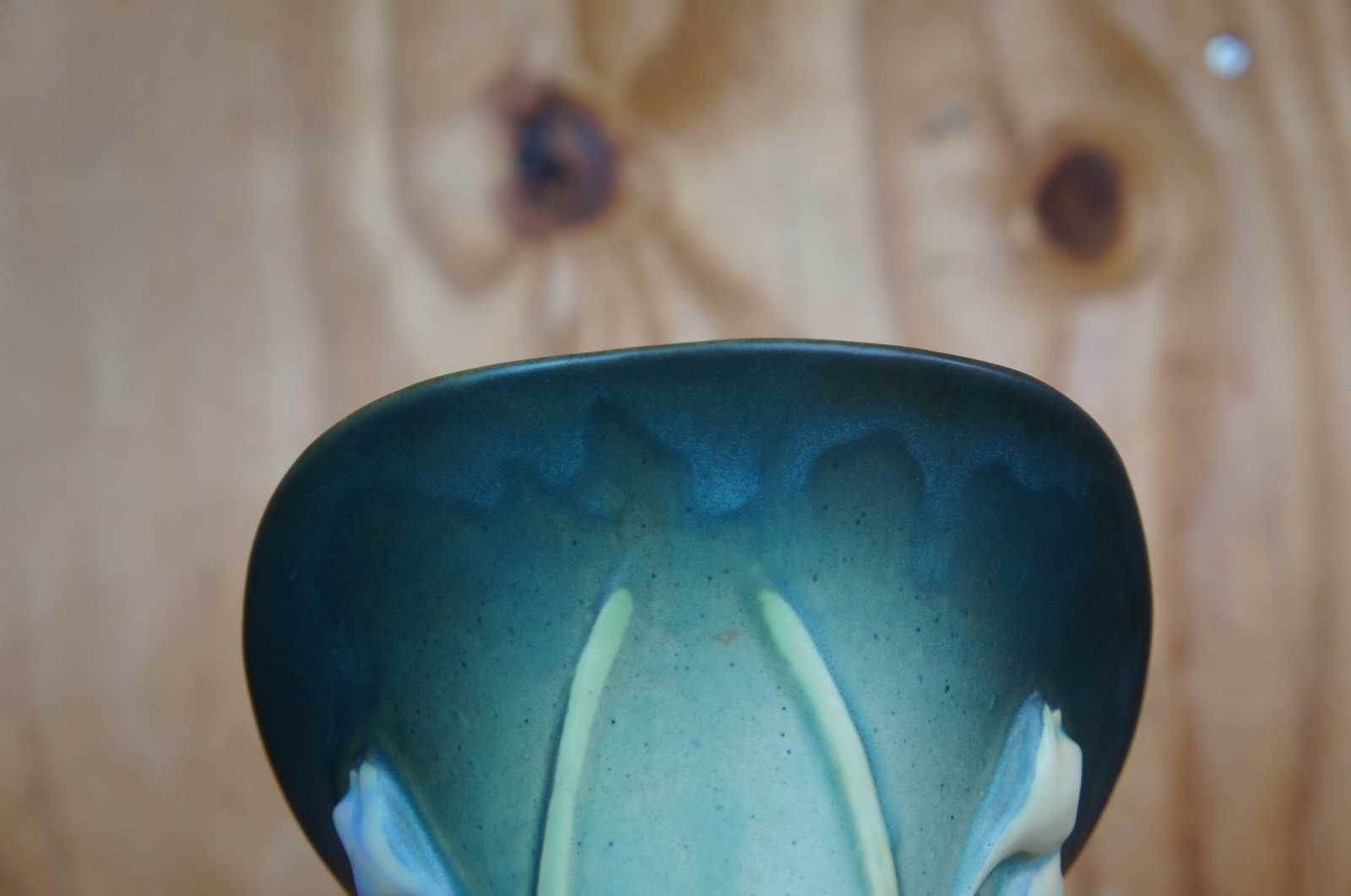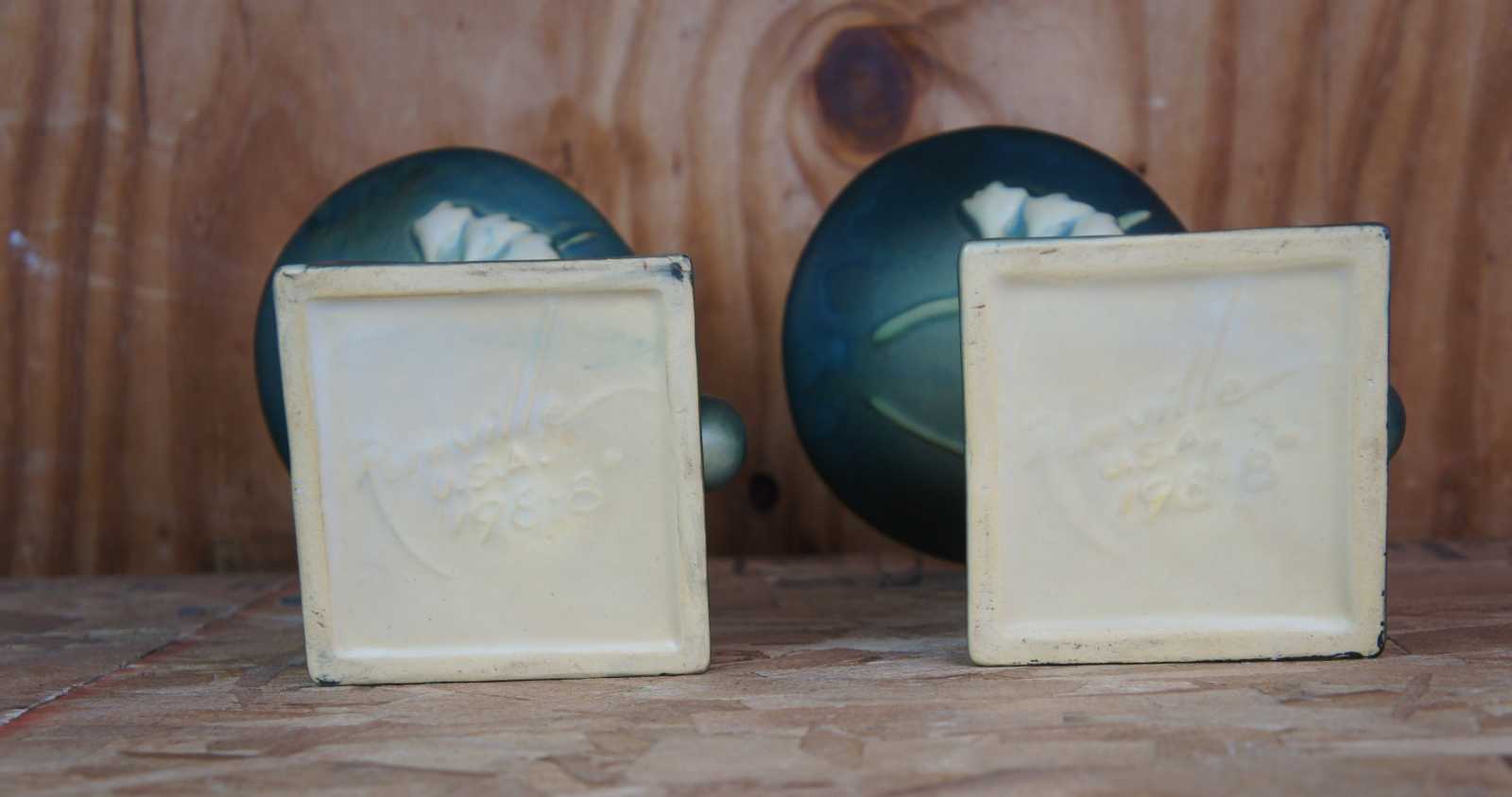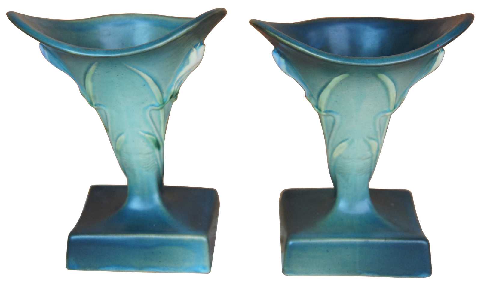 2 Roseville Freesia Cornucopia Vase in forest Green.