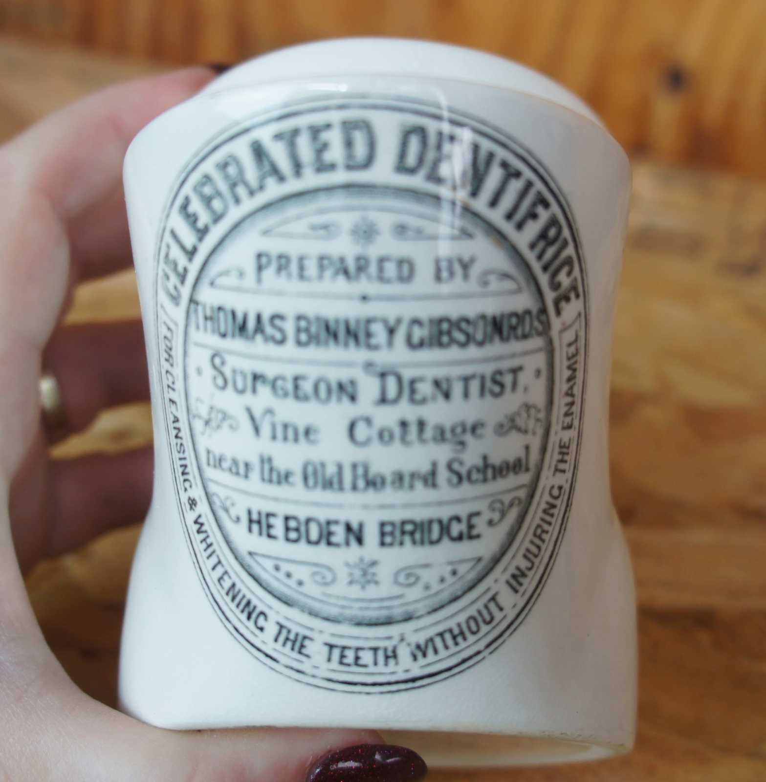 Rare Portmeirion Susan Williams Ellist Chemist Print Tooth Paste Advertisement Shaving Cup, circa 1960s