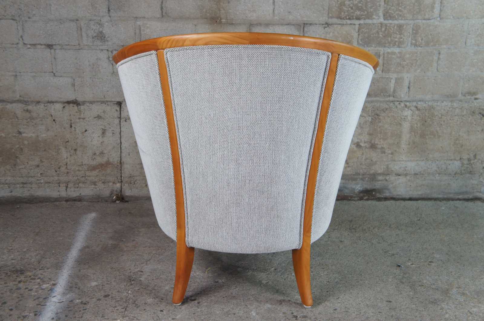 Mid Century Modern Skipper Mobler Furniture Co Chair and Sofa. Made in Denmark featuring bentwood maple frame with rounded form and a neutral upholstery.