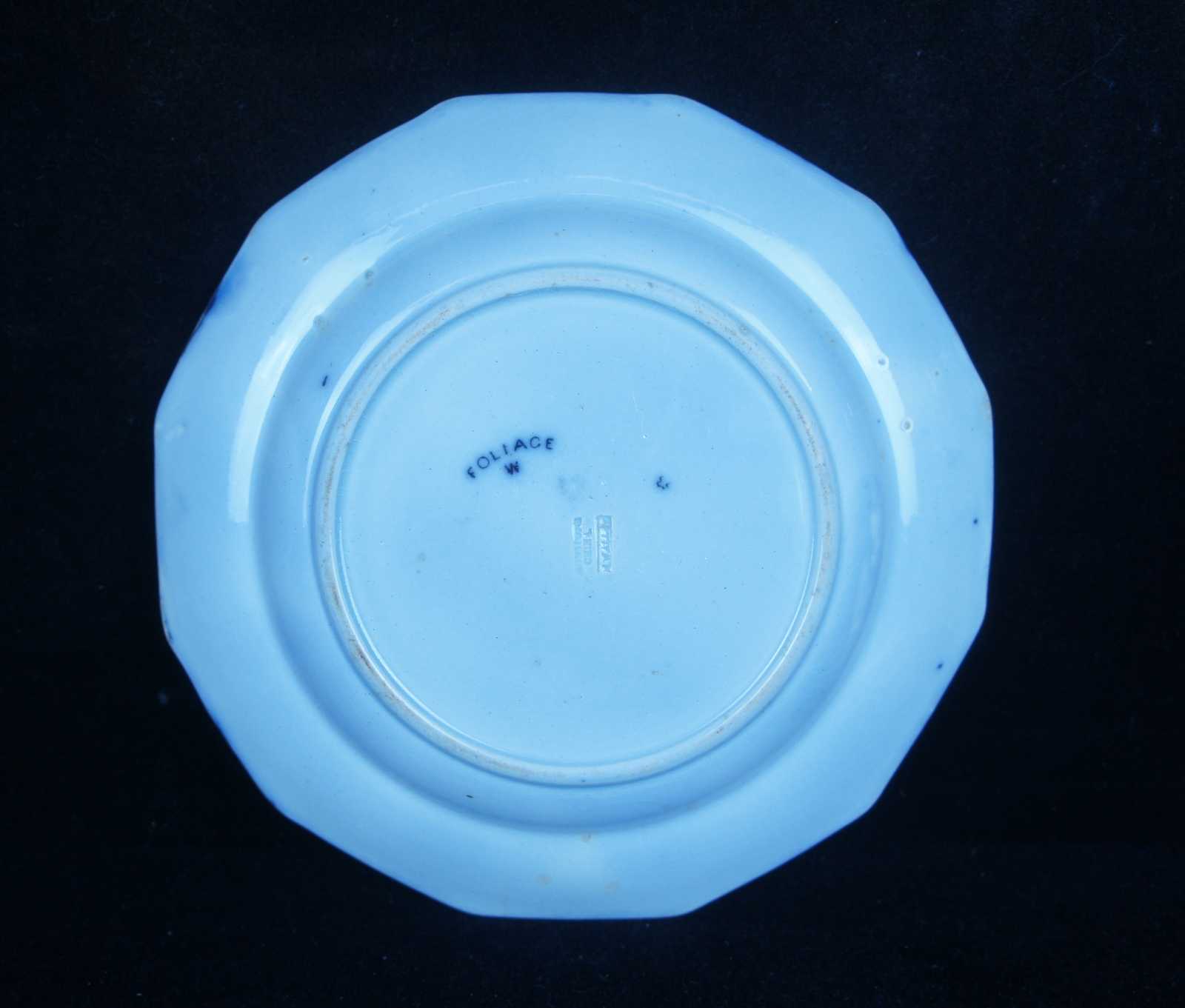 1 Edward Walley Foliage flow black transferware plate, Circa 1848-1858