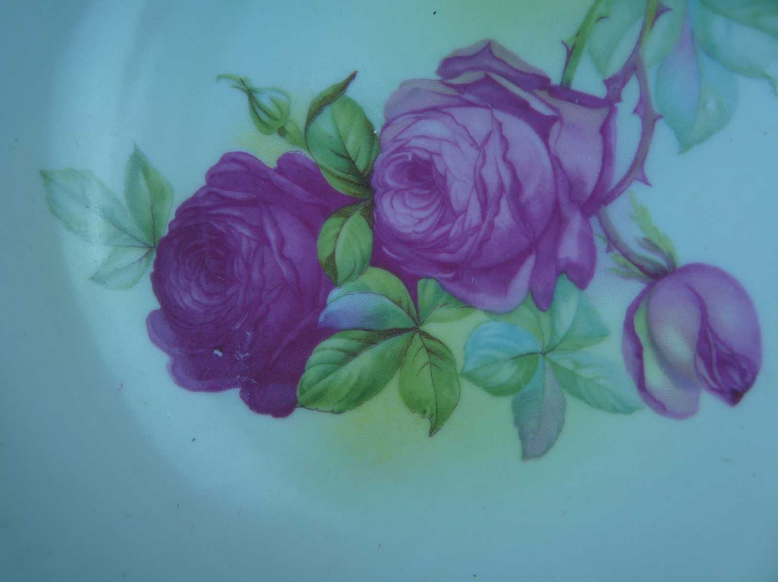 Antique floral bowl featuring hand painted roses and scalloped gold edge. Marked Germany, Bavaria with crown.