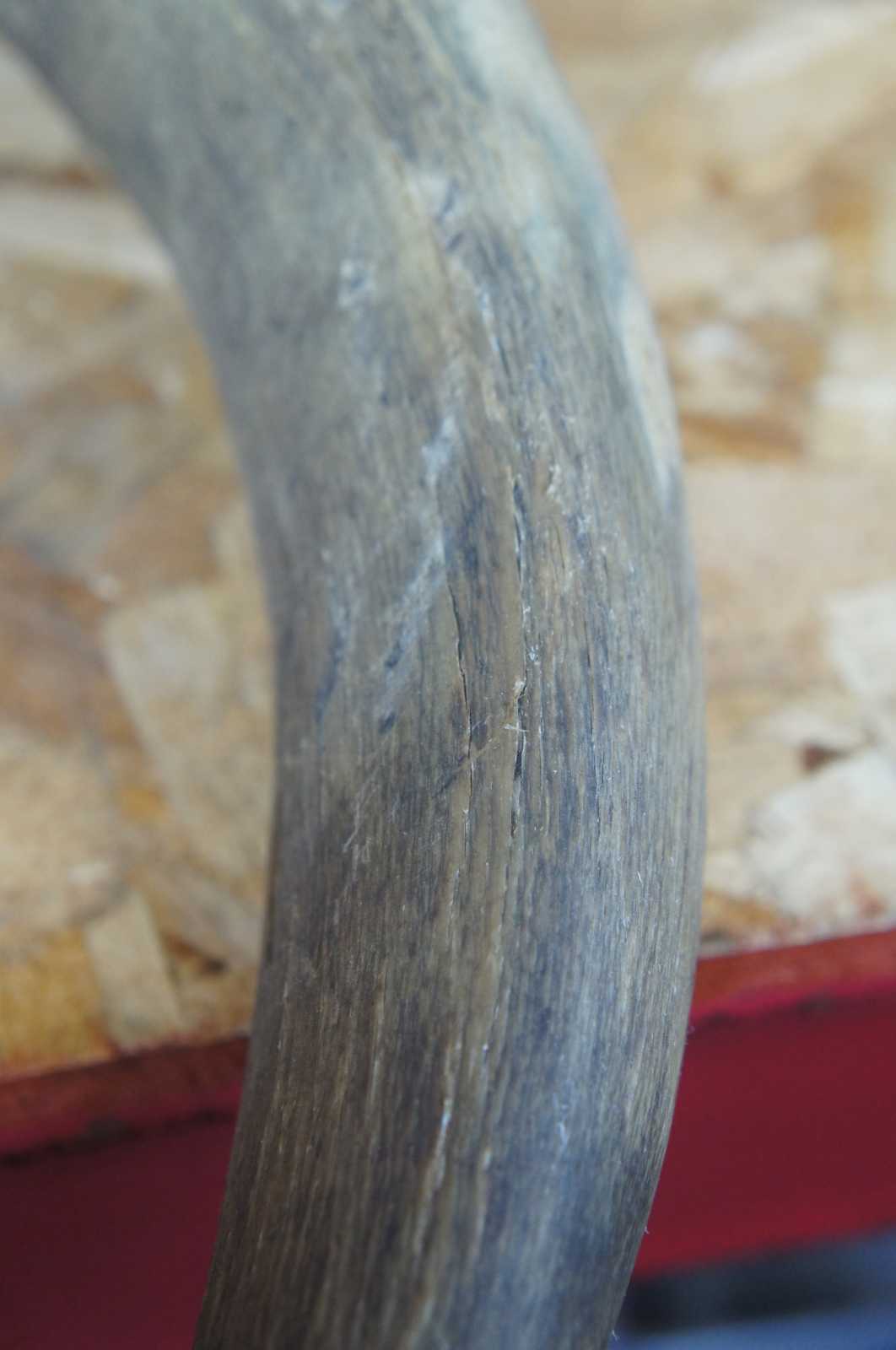 Fair condition, wear and distressing, some loose joining and peeling to horns.