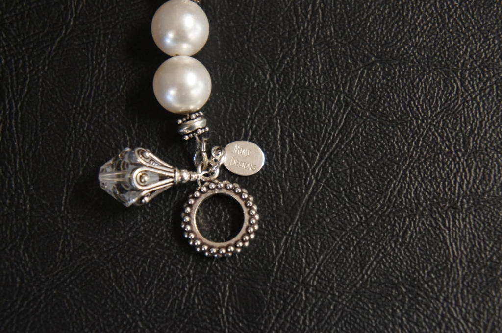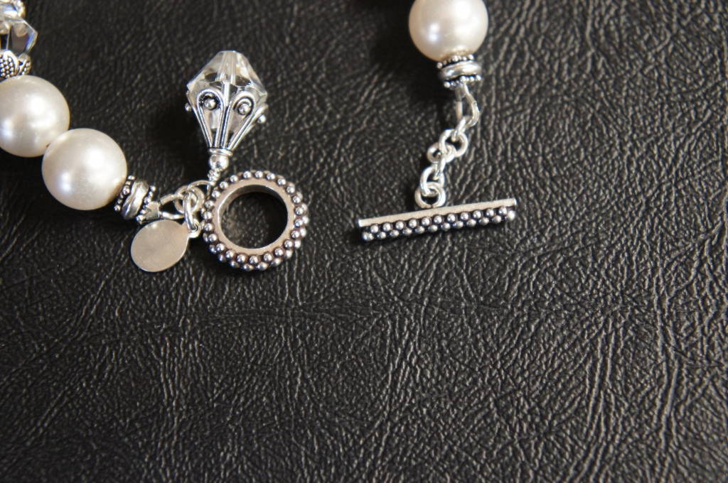 Faux Pearls, crystals, and silver accents make up this wonderful piece.