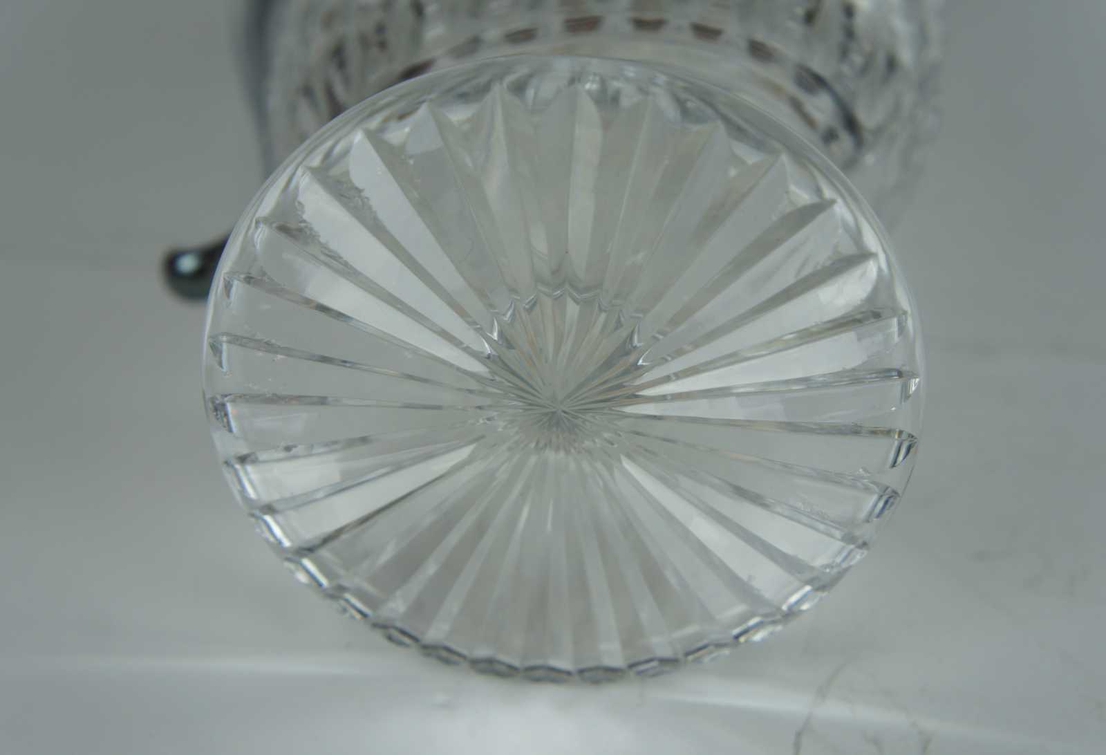 Antique Victorian Claret jug or pitcher. Made of crystal featuring a wheel cut pattern with silver plated handle, lid and spout. These jugs became popular in the 19th century for use to serve claret, a dry red wine produced in France's famous Bordeaux region.