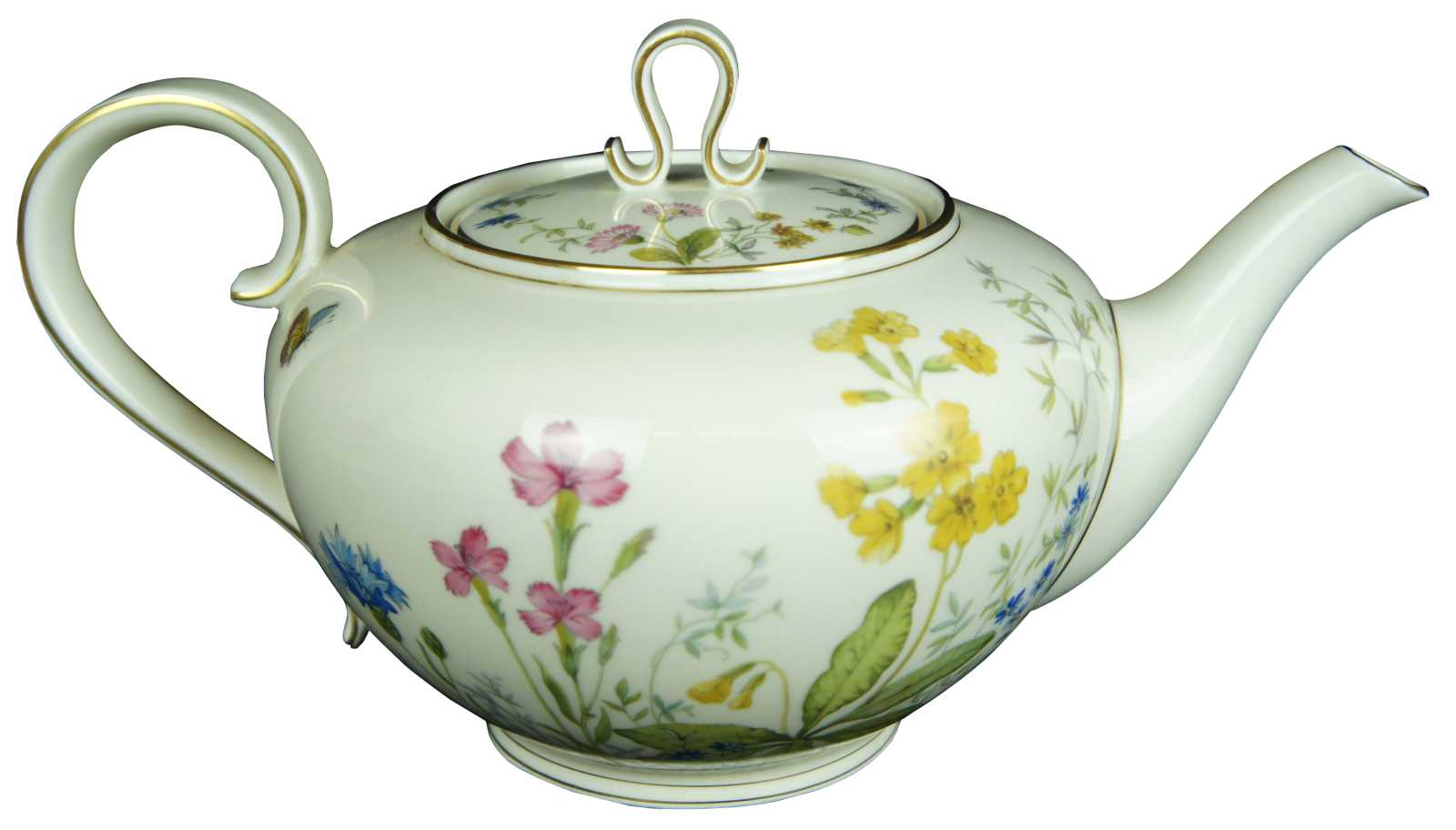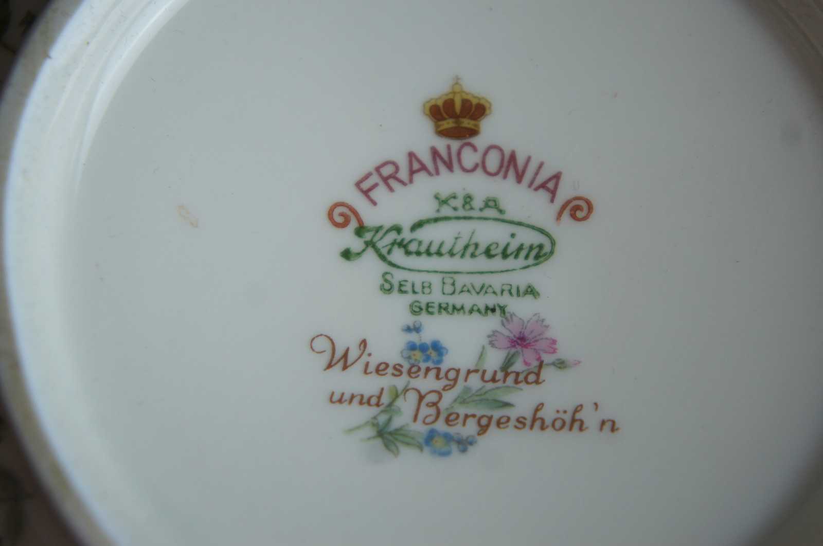 Vintage Franconia porcelain meadow flowers and butterfly teapot. Made in Germany, marked Franconia K & A Krautheim Selb Bavaria Germany Wiesengrund und Bergeshohn.