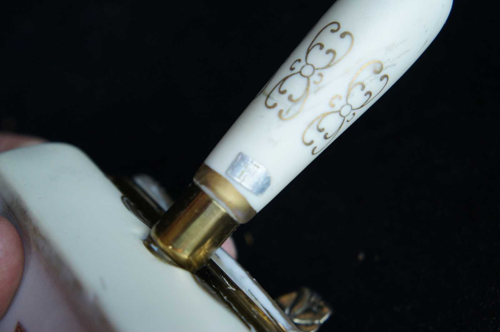 Vintage Ardalt Lenwile Japan porcelain silent butler crumb catcher and ashtrays featuring hand painted figures, floral and cherub design. 6802