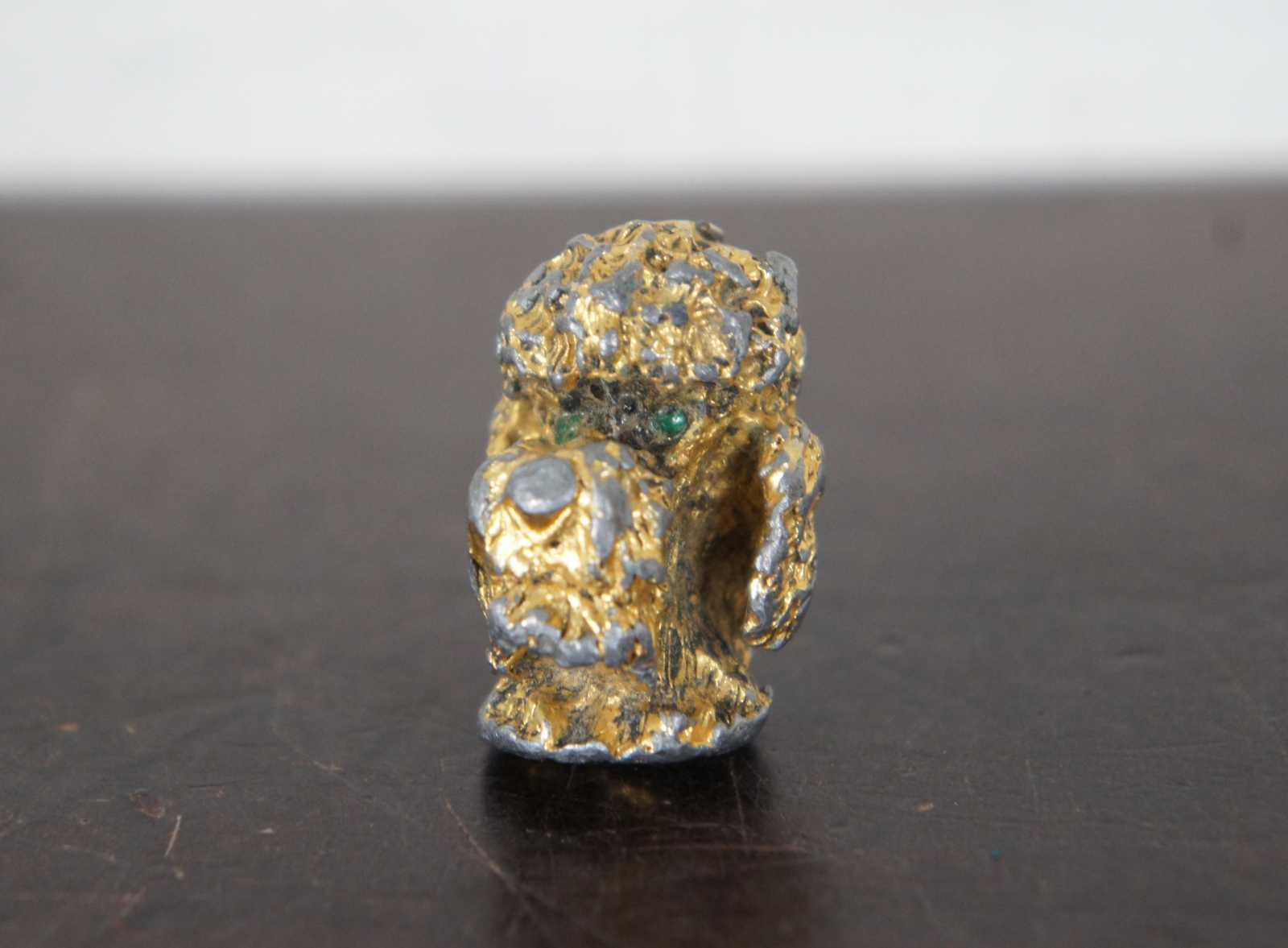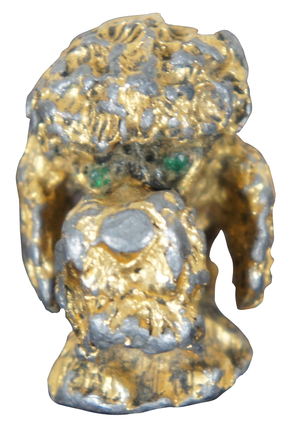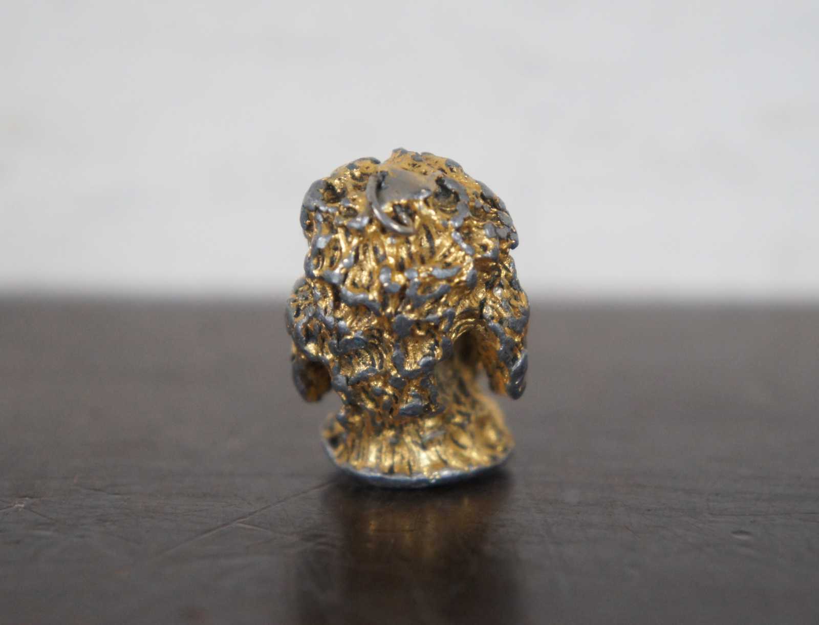Vintage mid century poodle bust or head pendant figurine with green eyes.