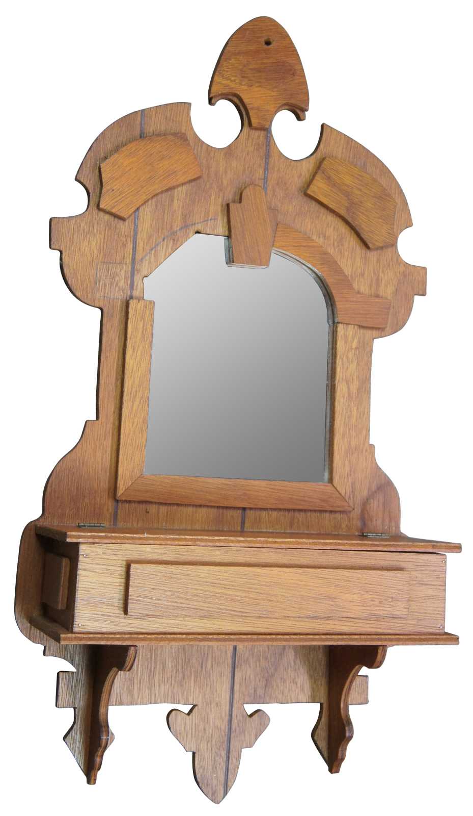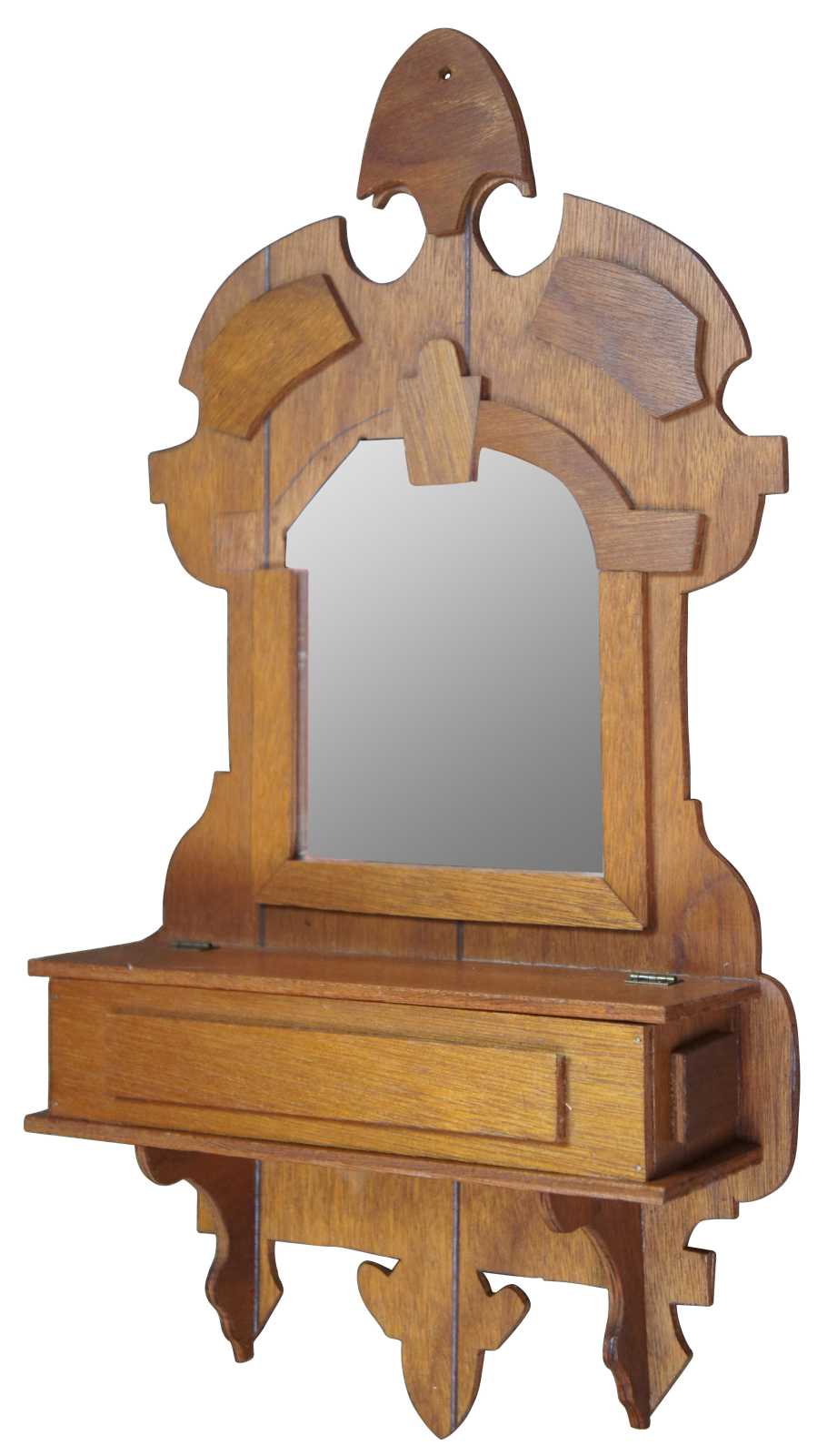 20th century Victorian revival wall shelf. Made from walnut with mirror and lower compartment.
