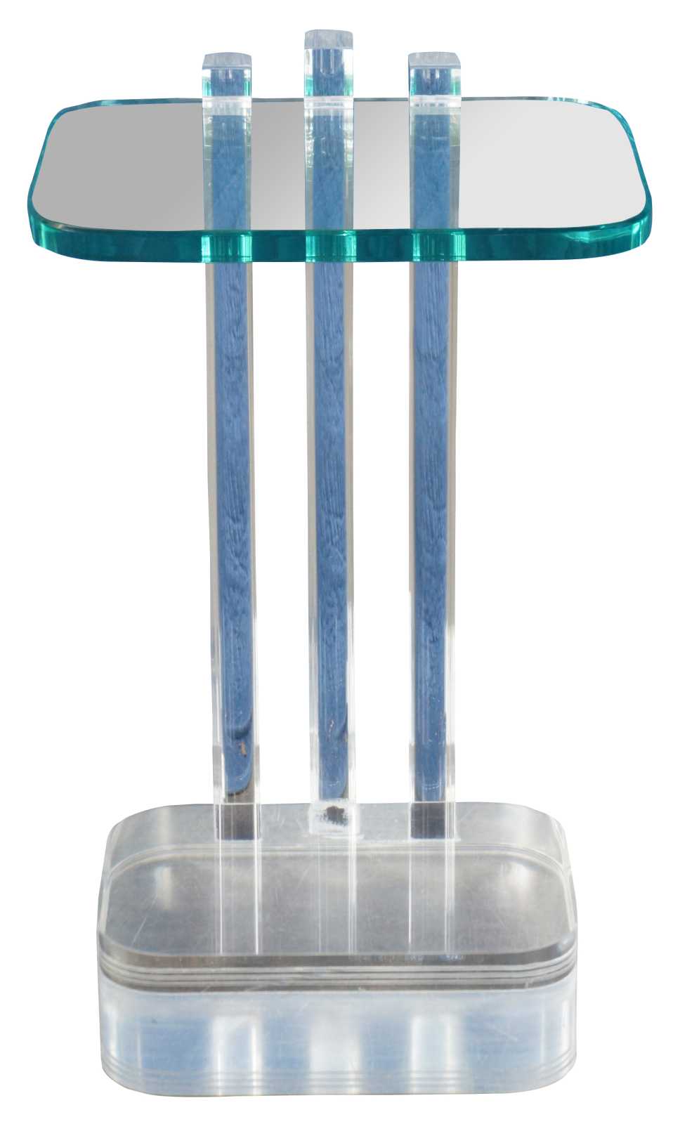 2 Les Prismatiques Mid Century Modern Lucite and Glass Side End Tables Pair MCM