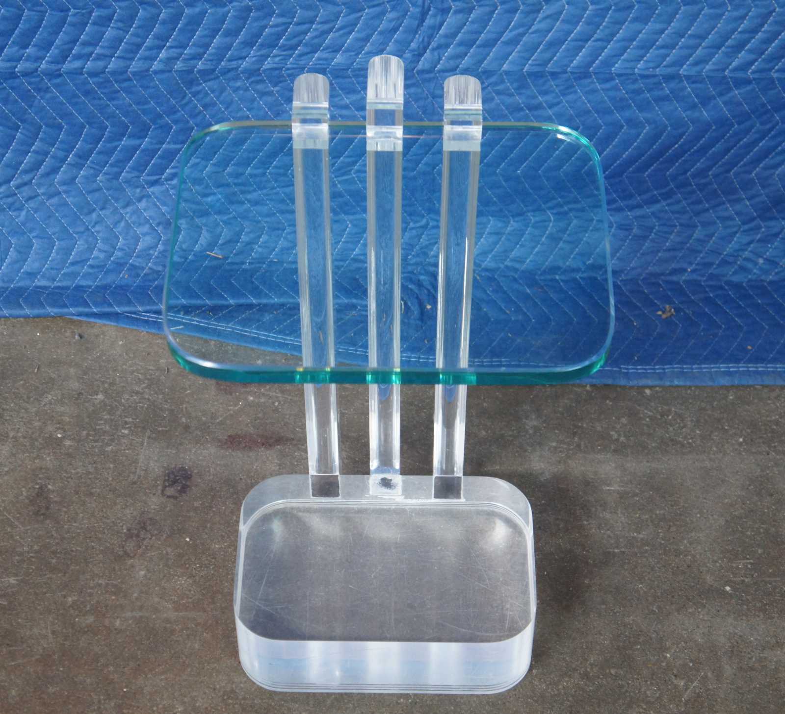 Good Vintage Condition; One of the tables was repaired where the glass inserts into the top catch of the lucite