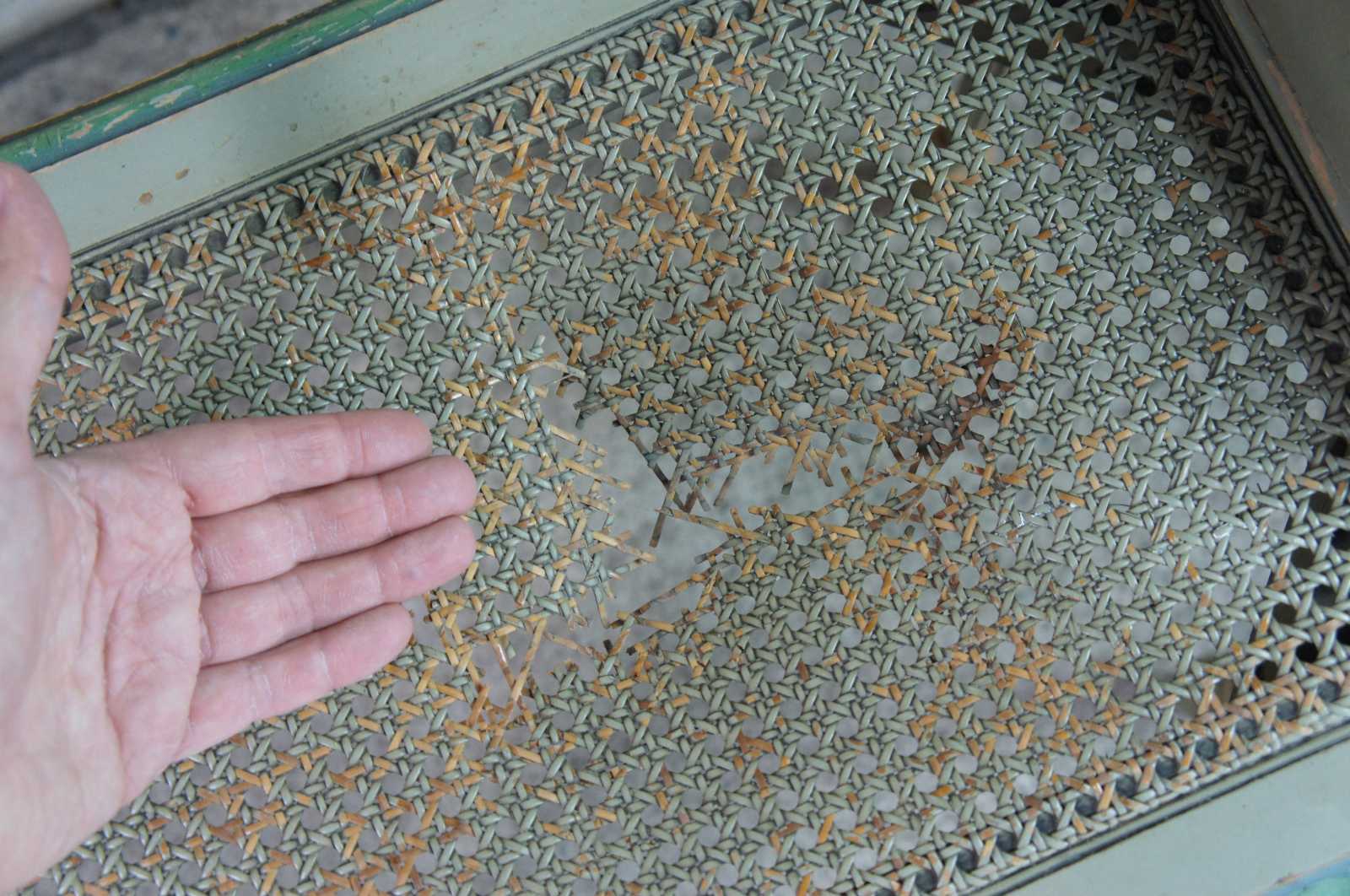 Fair, wear and distressing, paint / finish loss, needs recaned.
