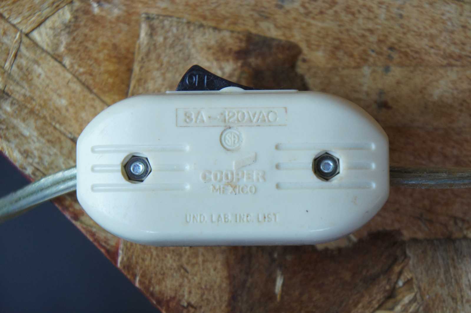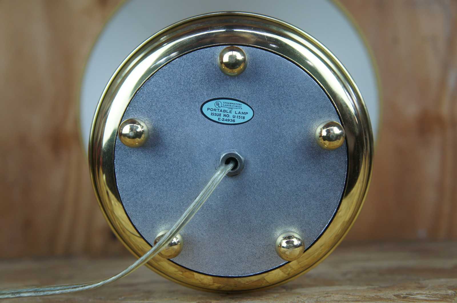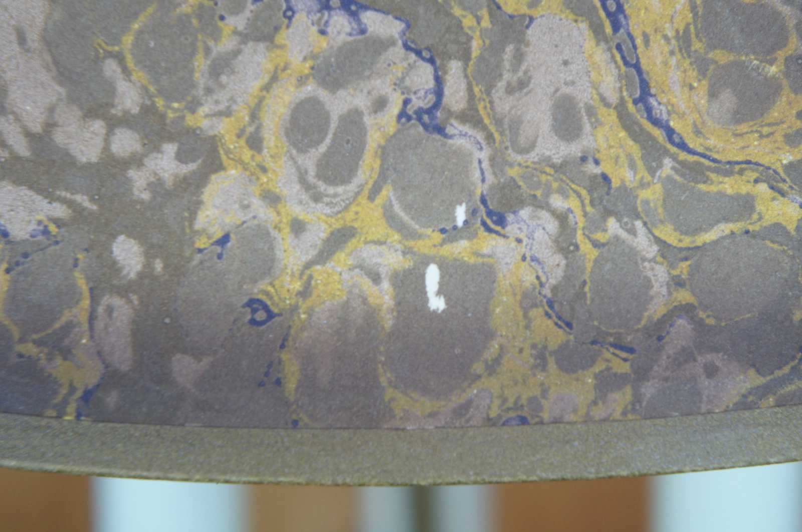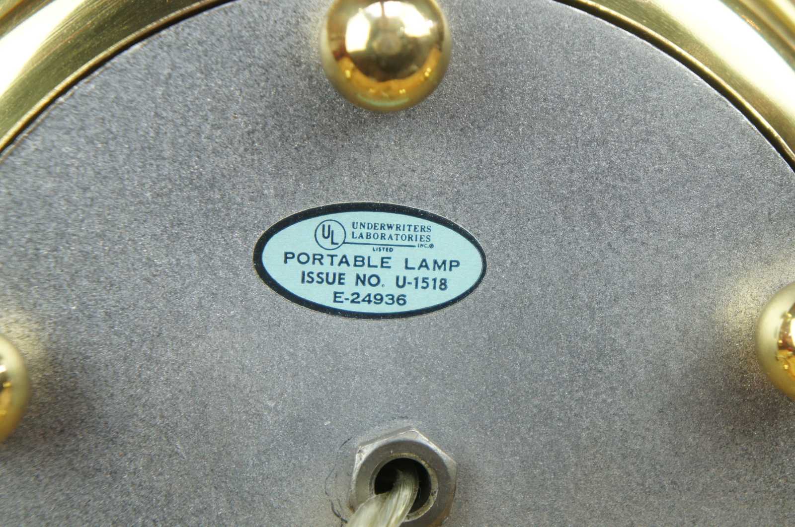 Good vintage condition, light wear and distressing, split to one candlestick, finish loss to shade.
